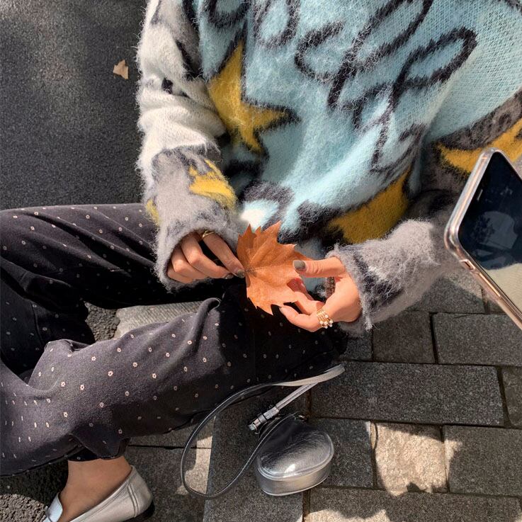 Polka dot straight denim pants 2litr05565