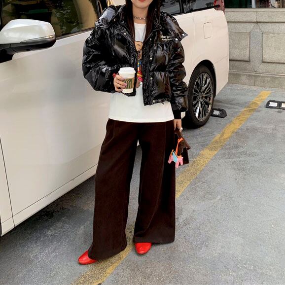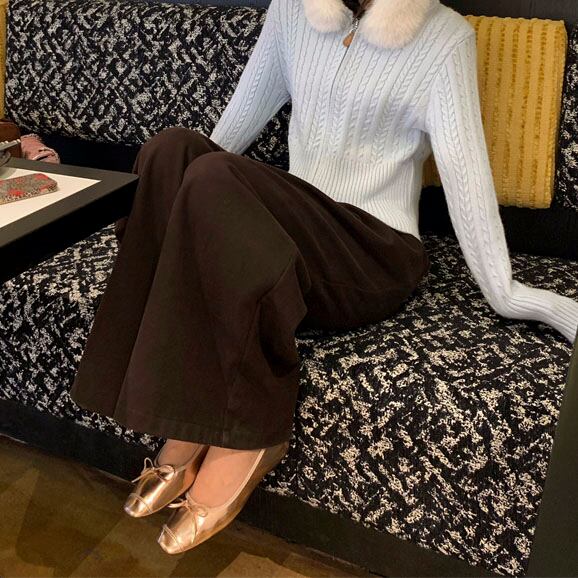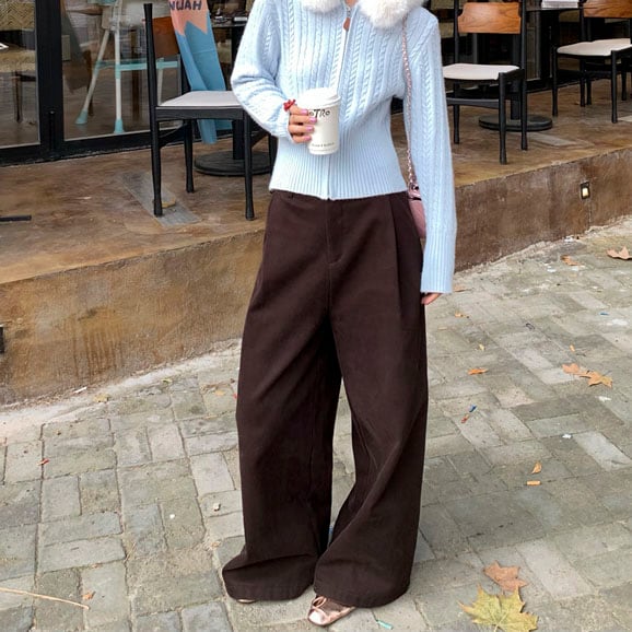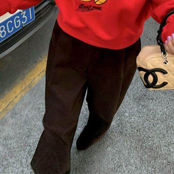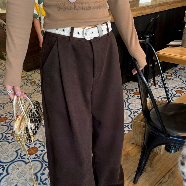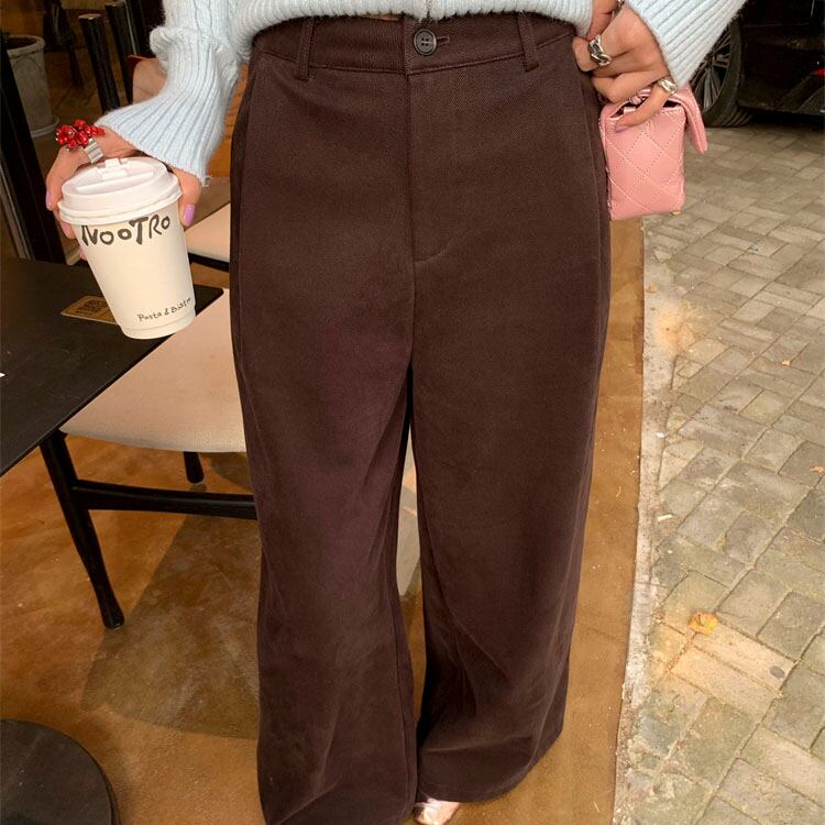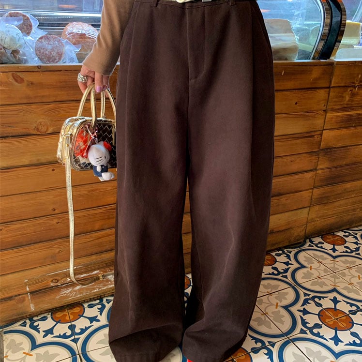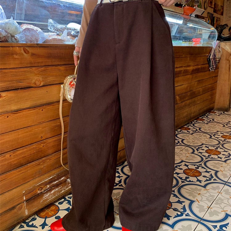 Velvet-like wide straight pants 2litr05566