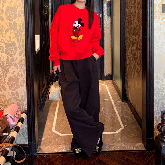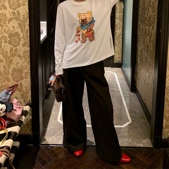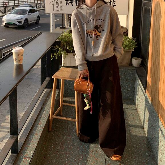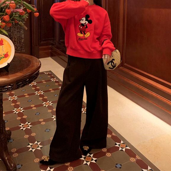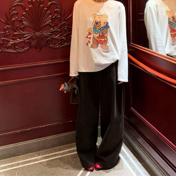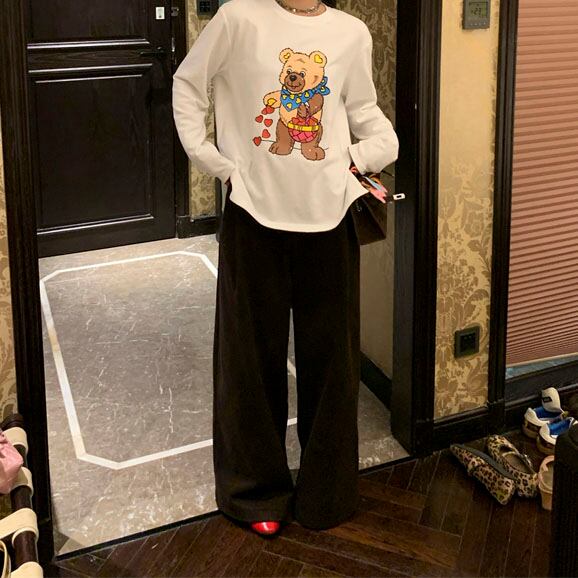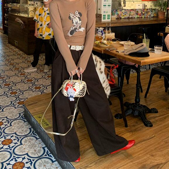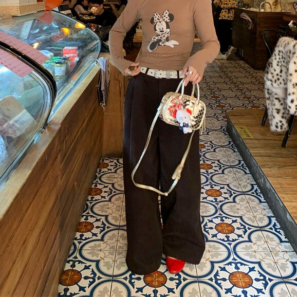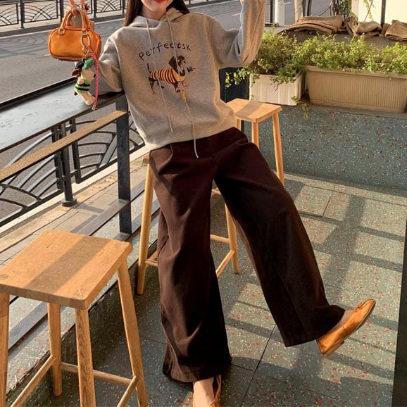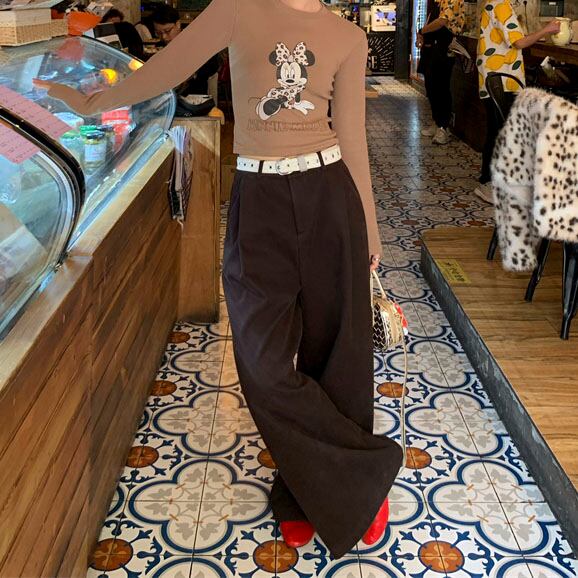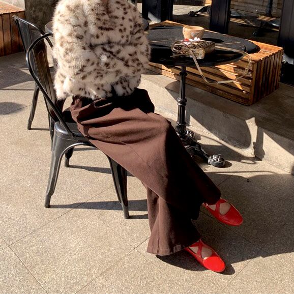 Velvet-like wide straight pants 2litr05566
