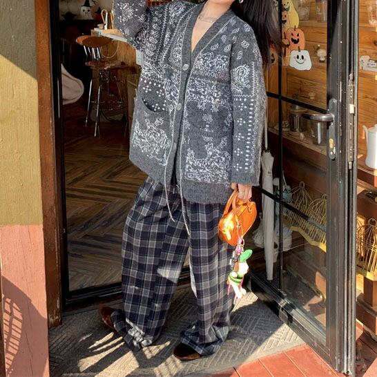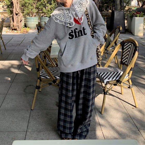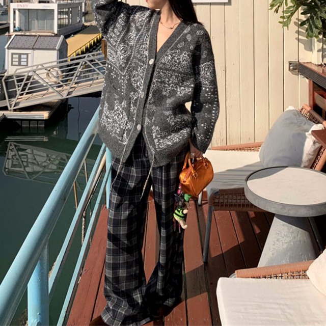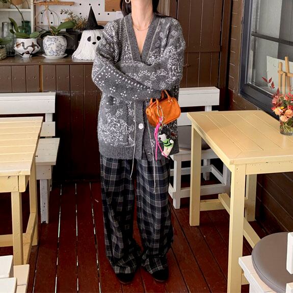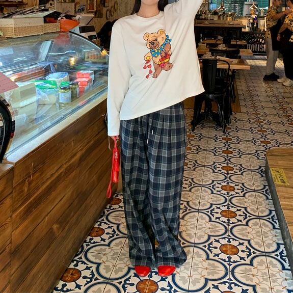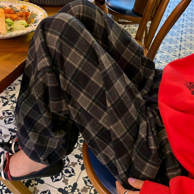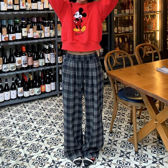 Checked relaxed wide pants 2litr05621