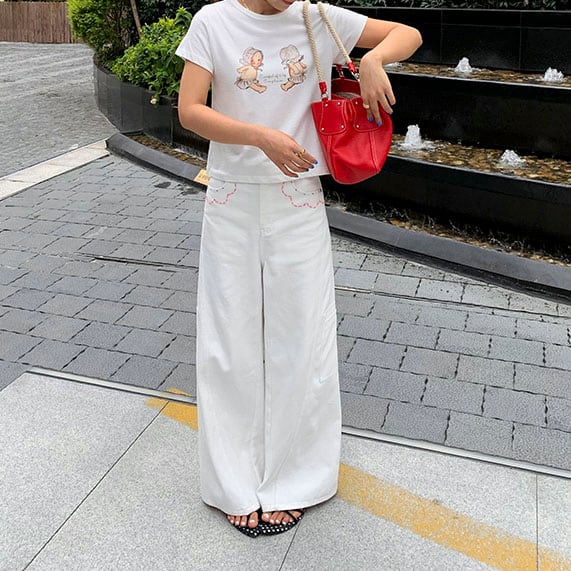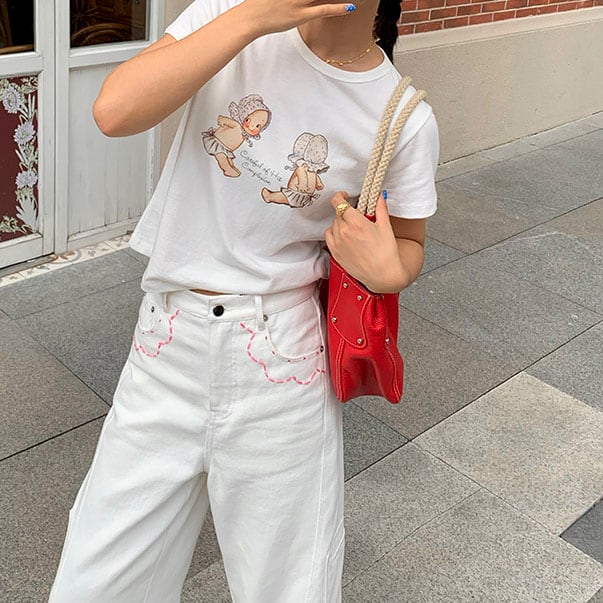 カジュアルにもフェミニンにも馴染む万能Tシャツです。