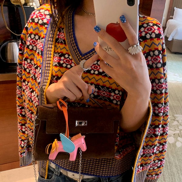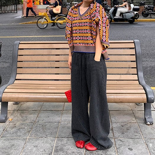 カラフルな編み柄が目を惹くレトロムードな一枚♡
