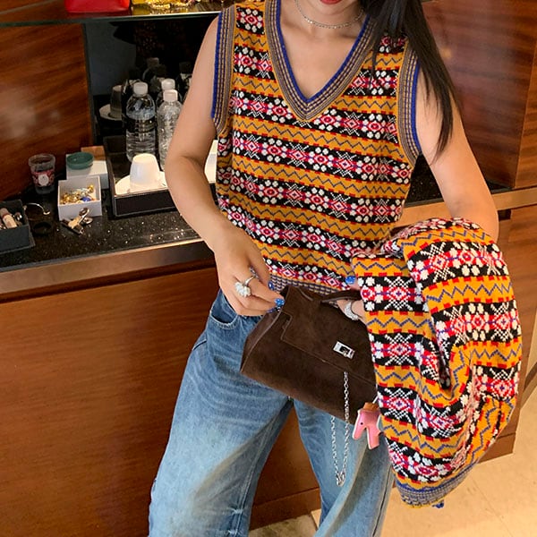 Retro pattern knit vest 2litr05748