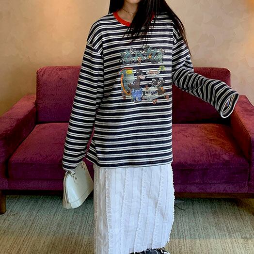 遊び心あるコミックプリントが目を引くロングTシャツ♡