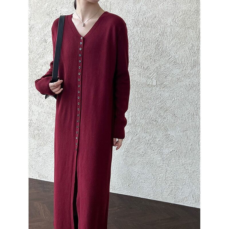 v-neck cardigan knit long one-peice 2litr05785