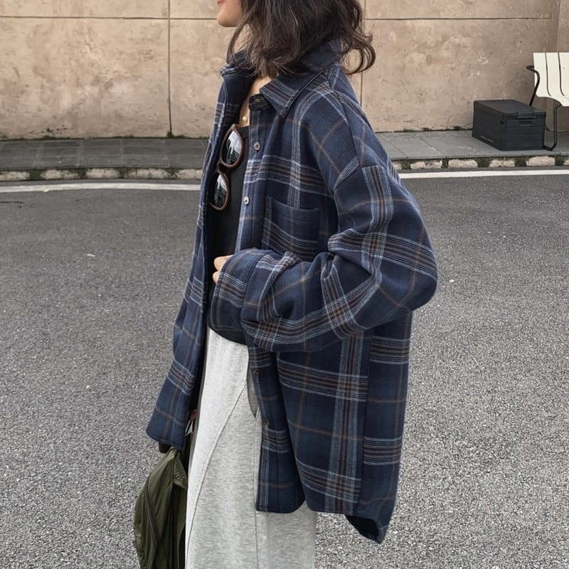 plaid oversize thick retro shirt 2litr05775