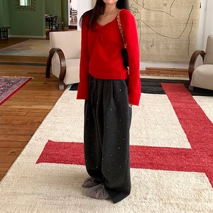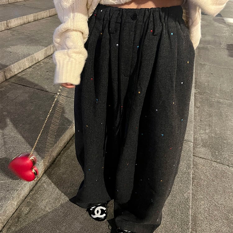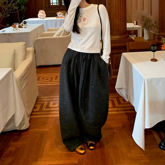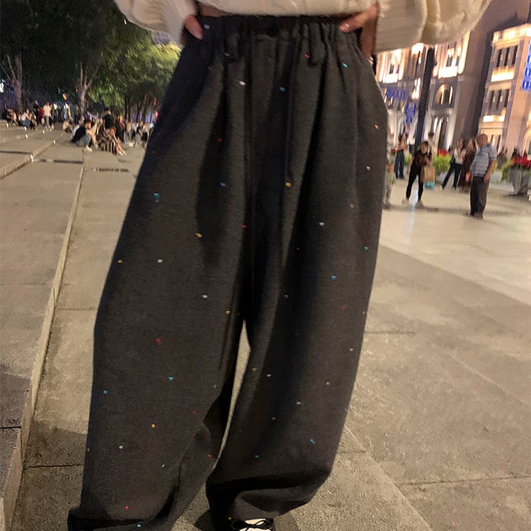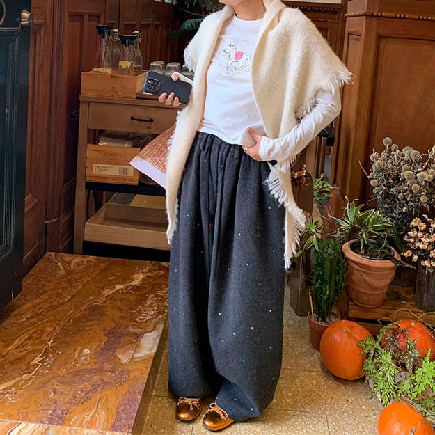 小さなカラードット刺繍が愛らしいワイドパンツ♡