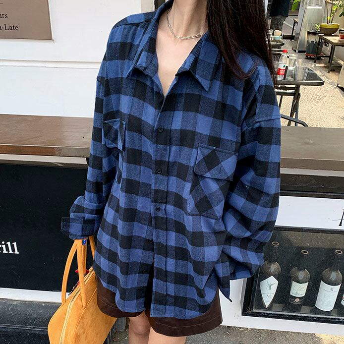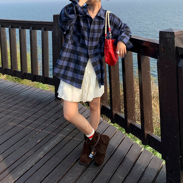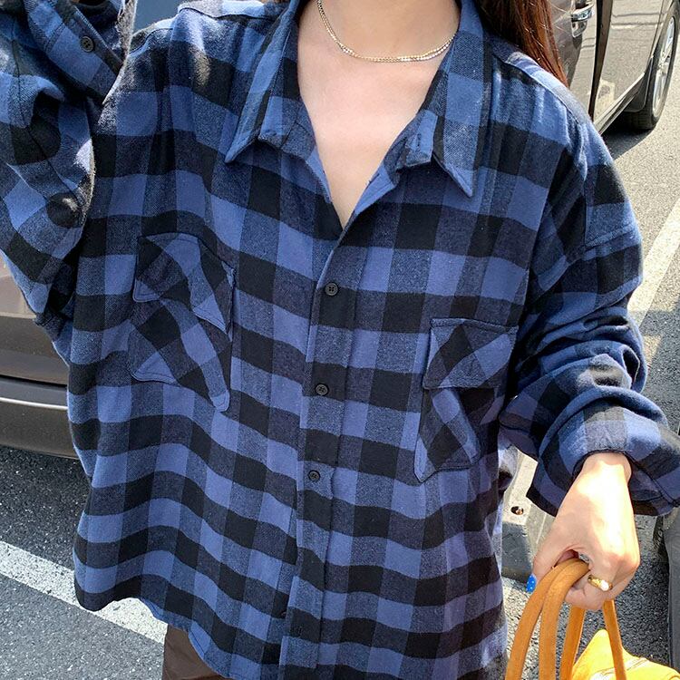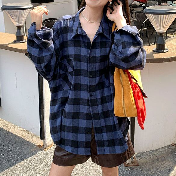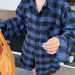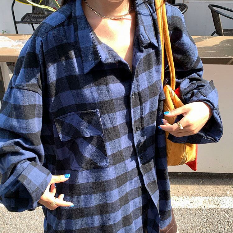 深みのあるブルー×ブラックの配色が大人可愛いチェックシャツ♡