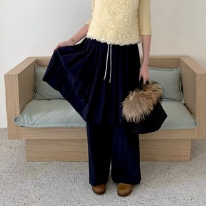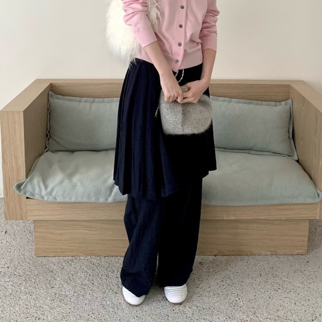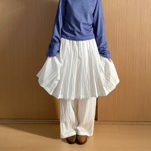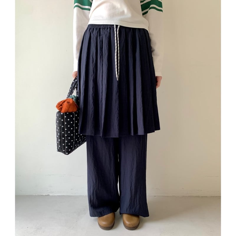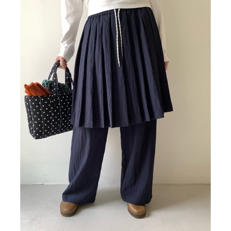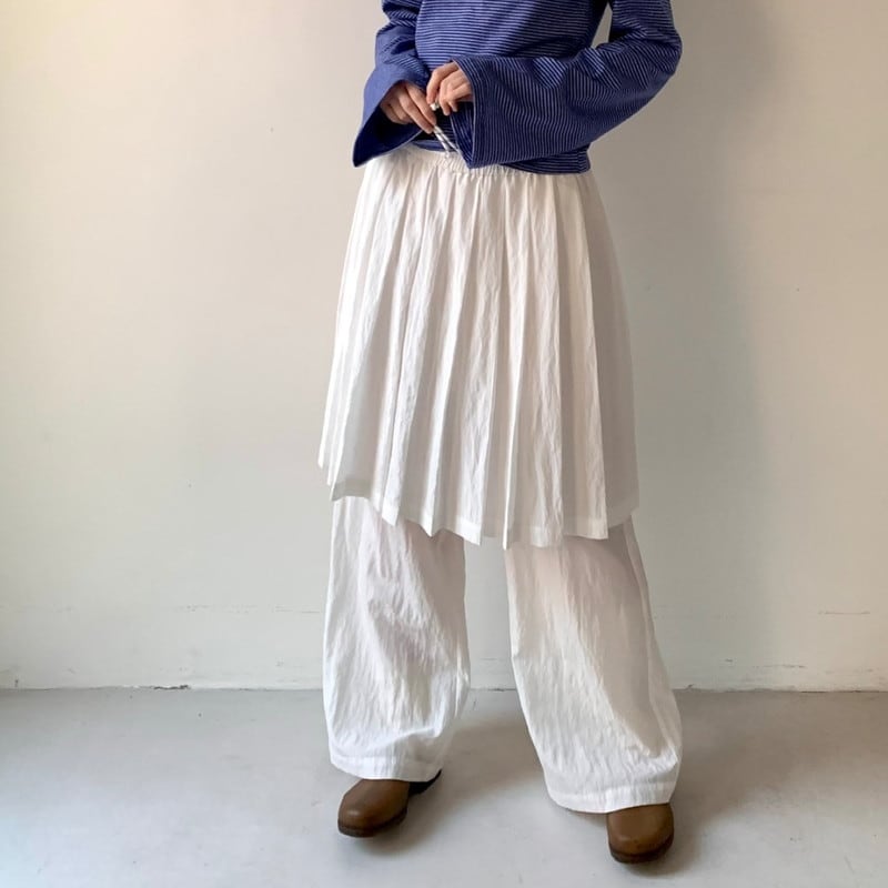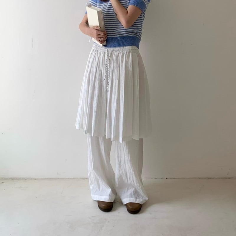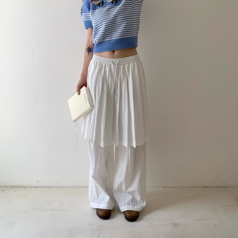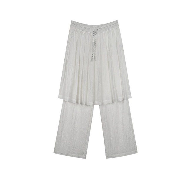 drawstring layered pleats-skirt overlay wide-pants 2litr05799