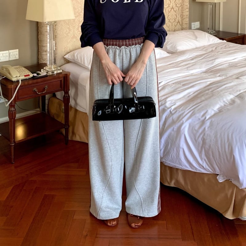 plaid-line elastic-waist sweat pants 2litr05802