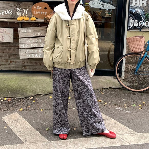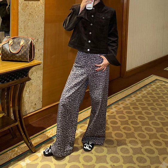 Leopard print jacquard wide pants 2litr05808