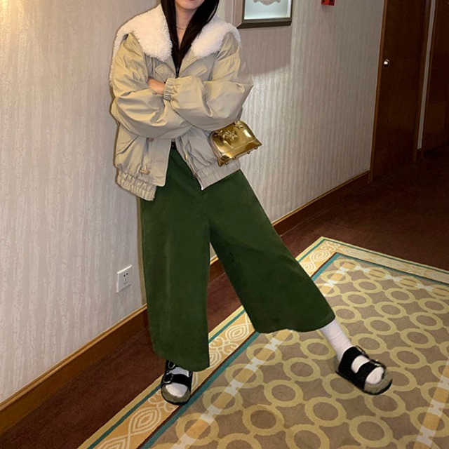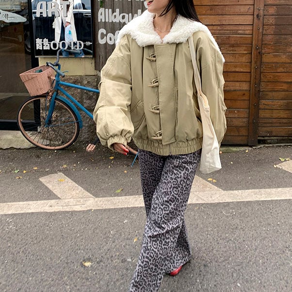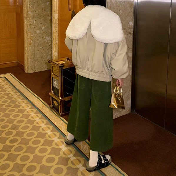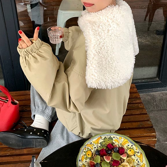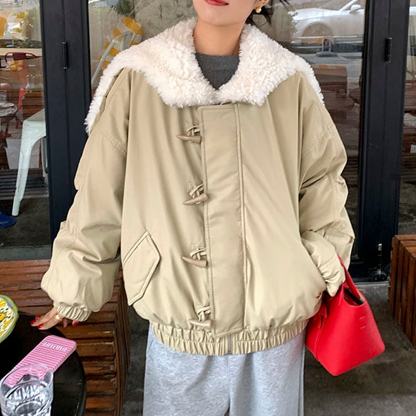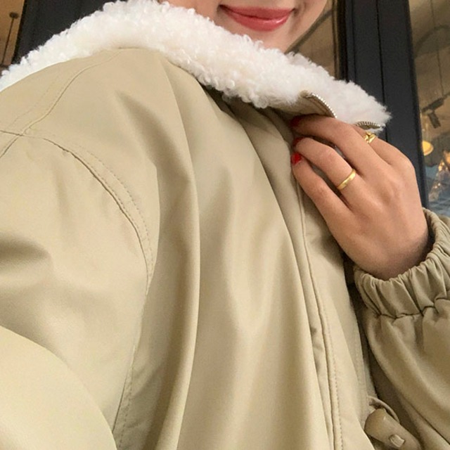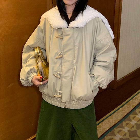 大きめのボア襟がポイントの、フェミニンなパフジャケット♡