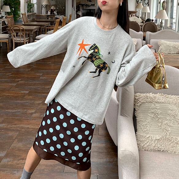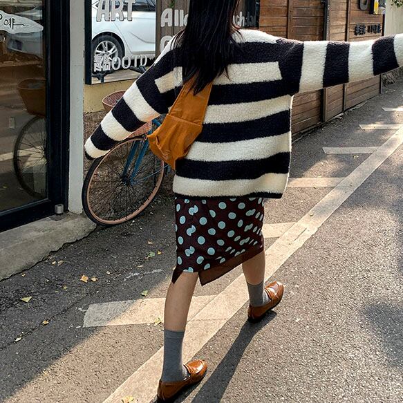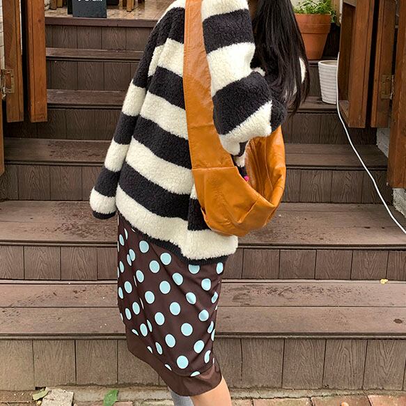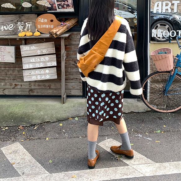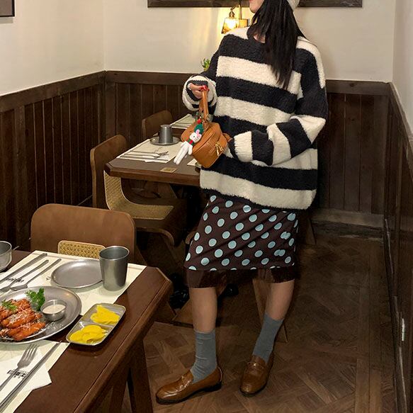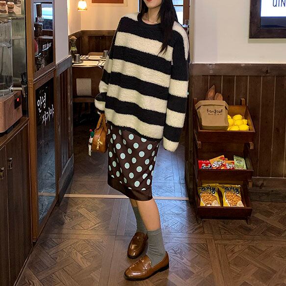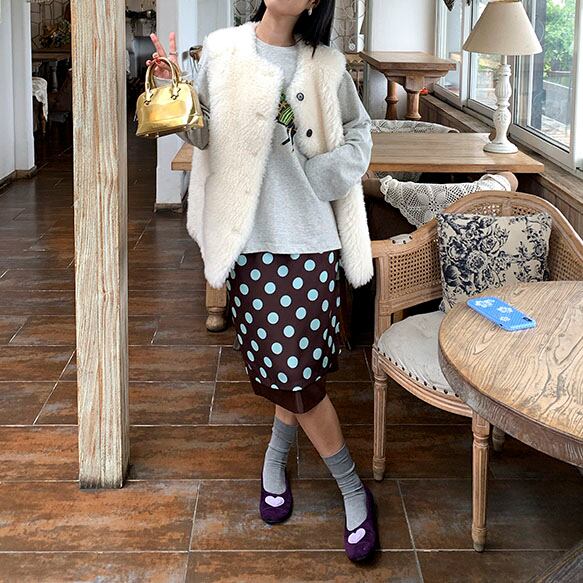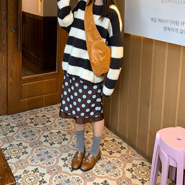 つるんとした光沢感が美しい、サテン仕立てのドットスカート♡