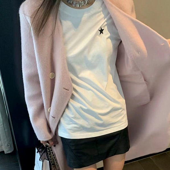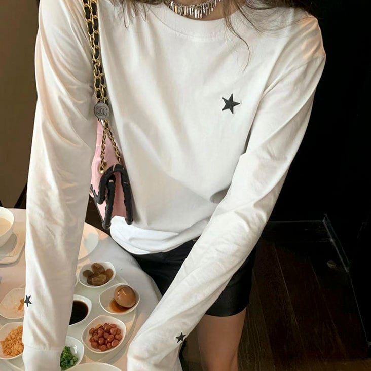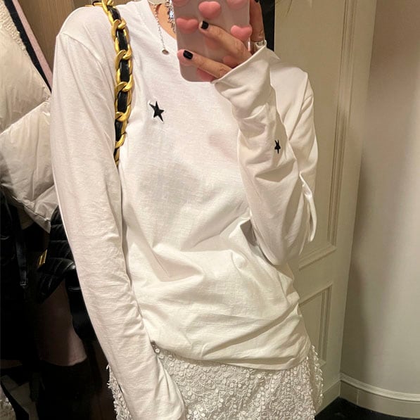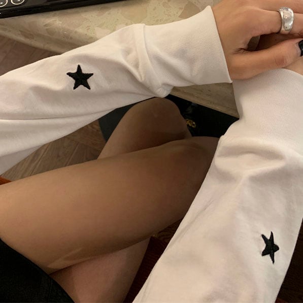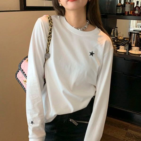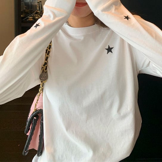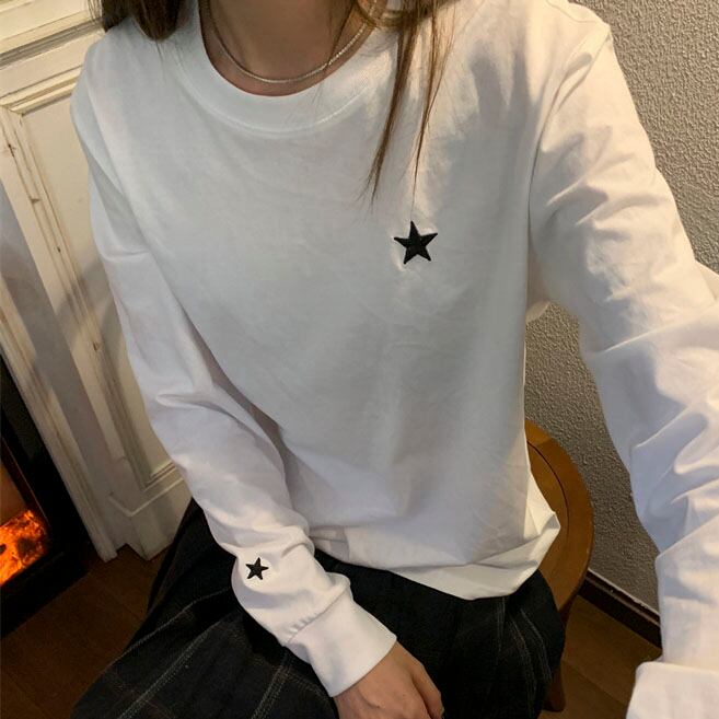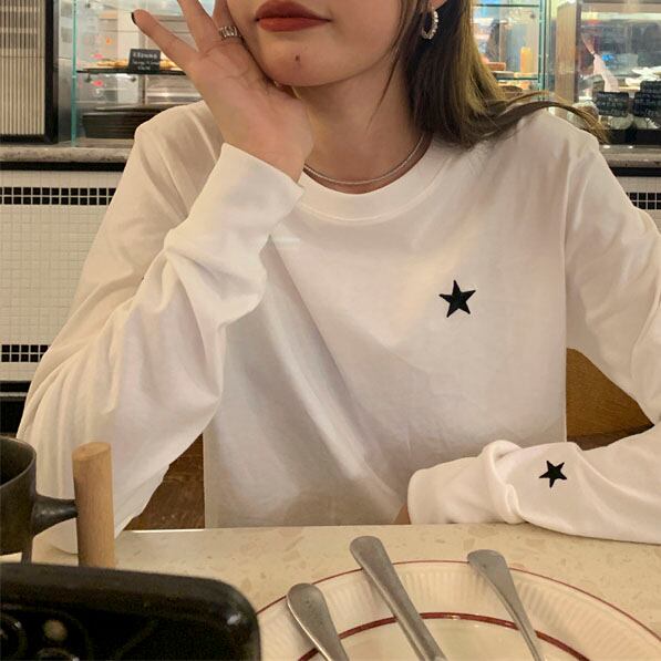 胸元と袖口に小さな星刺繍をあしらったロングTシャツです☆