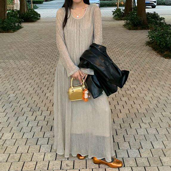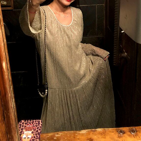 繊細なラメがきらめく、華やかなロングワンピースです♡
