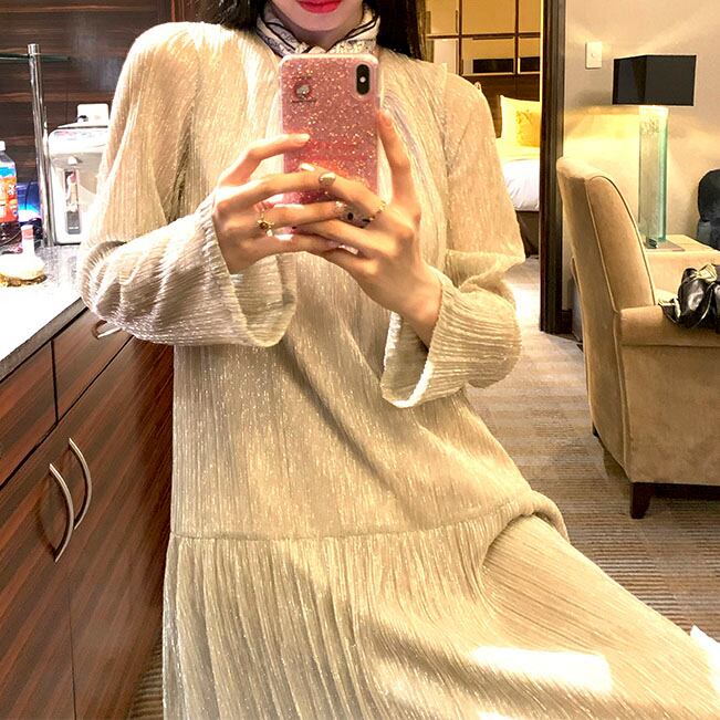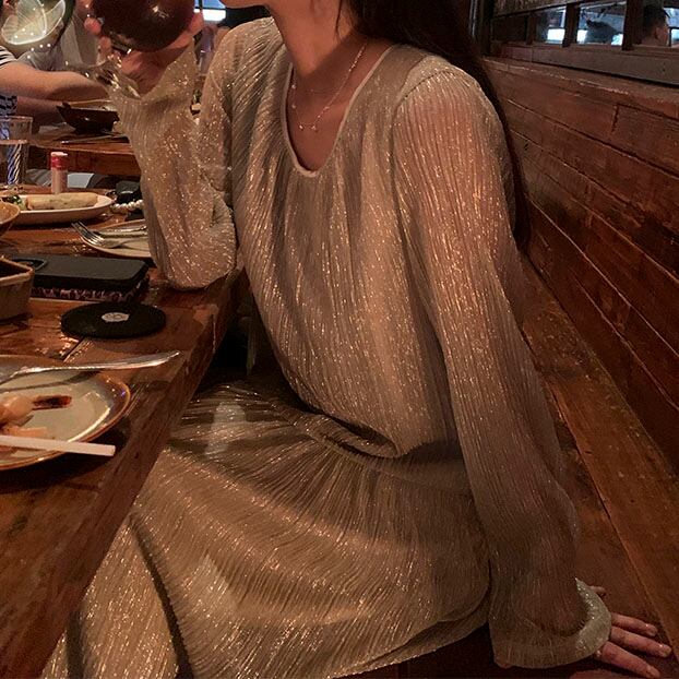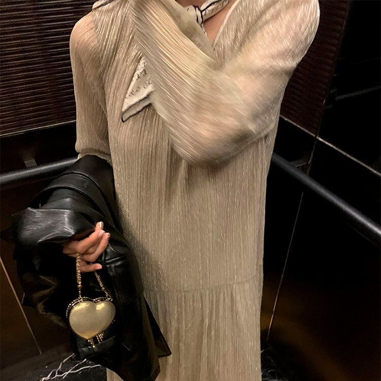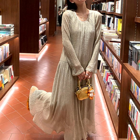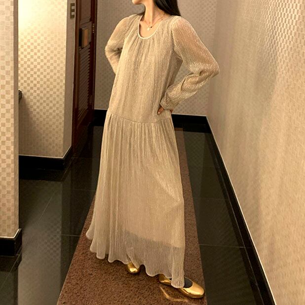 Shiny pleated long dress 2litr05821