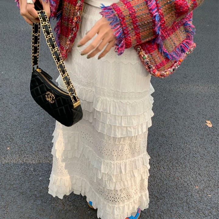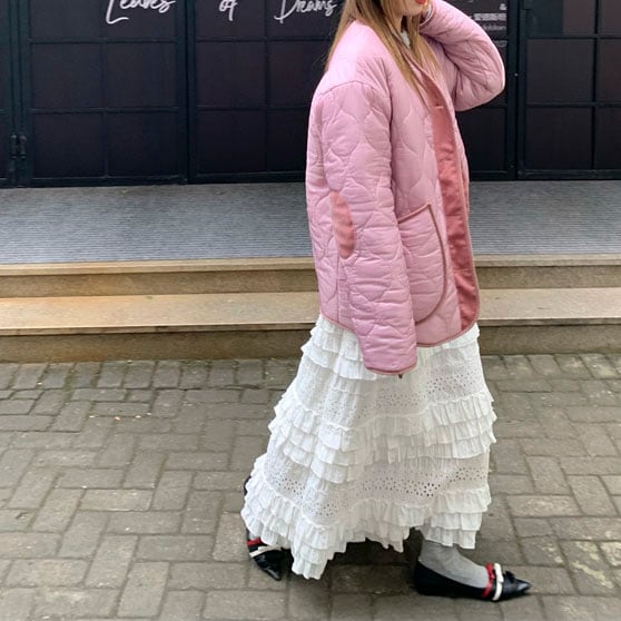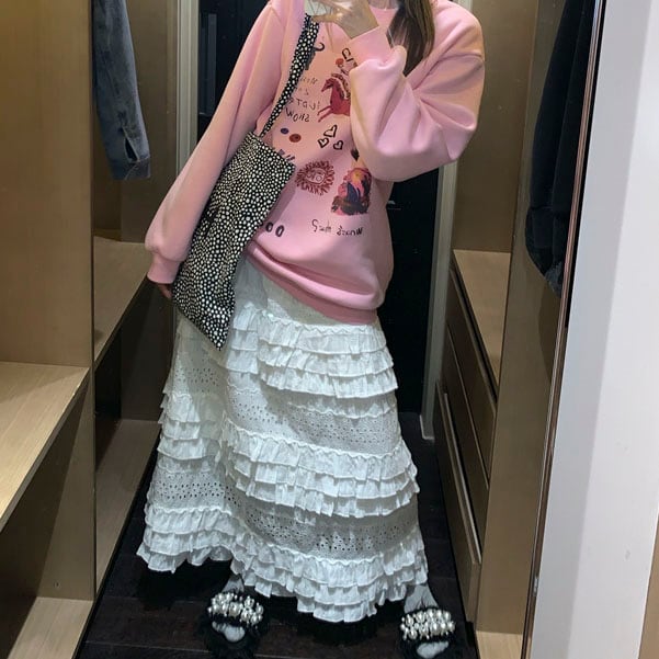 繊細なアイレットレースとたっぷりのフリルが華やかなロングスカートです♡