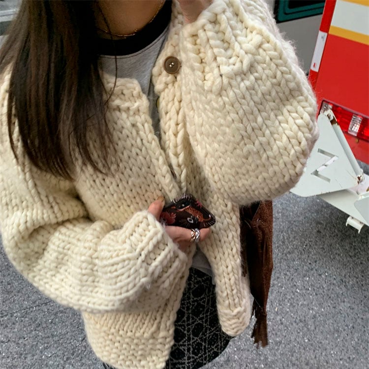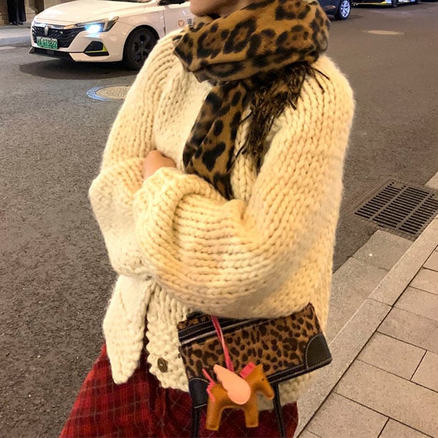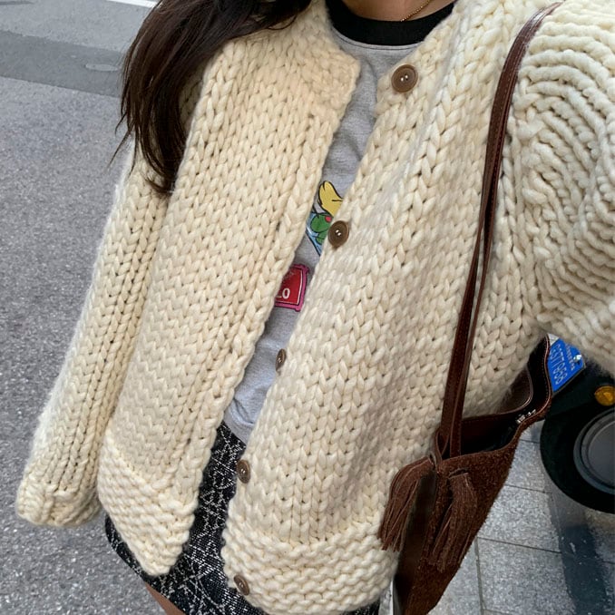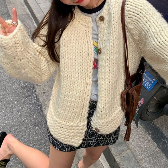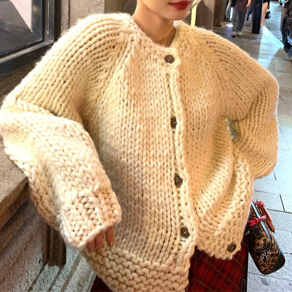 ざっくりとした編み目が魅力のローゲージカーディガンです♡