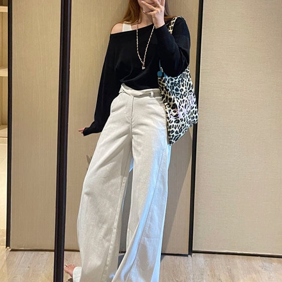 オフショルにもできるゆるめのネックラインで、抜け感のある着こなしに♡