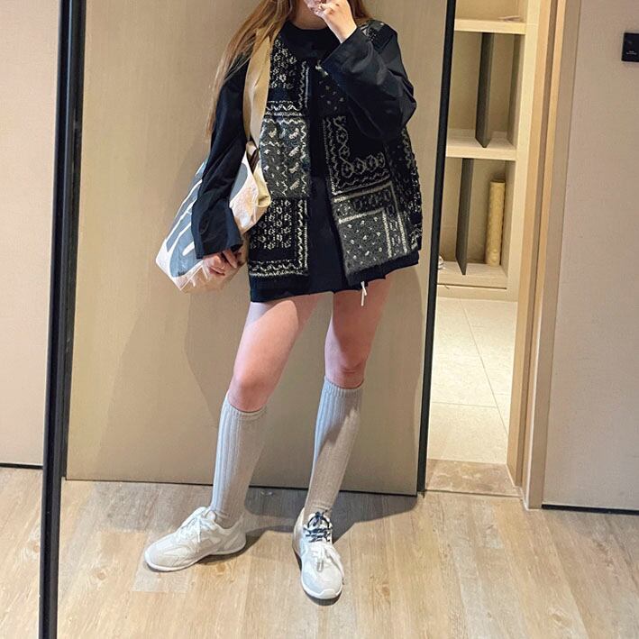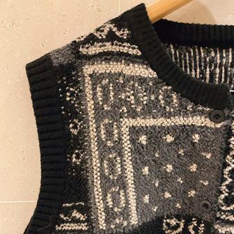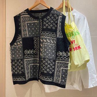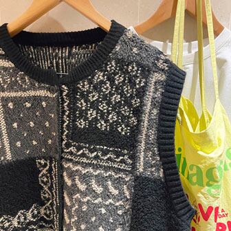 モノトーンのバンダナ柄が印象的なニットベストです!