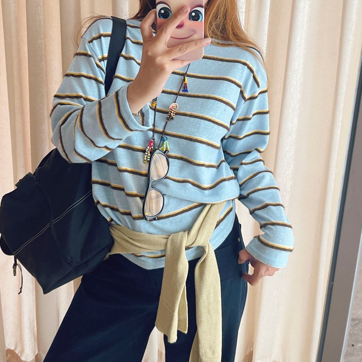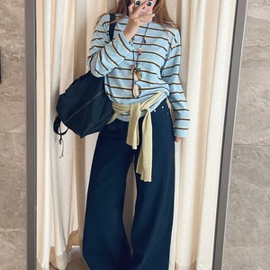 柔らかな風合いと軽い着心地が魅力のボーダーニットトップスです!