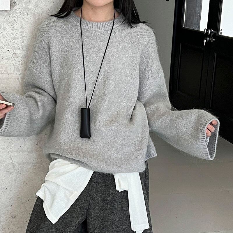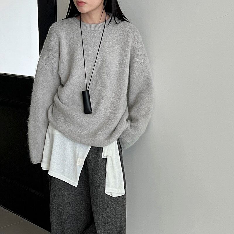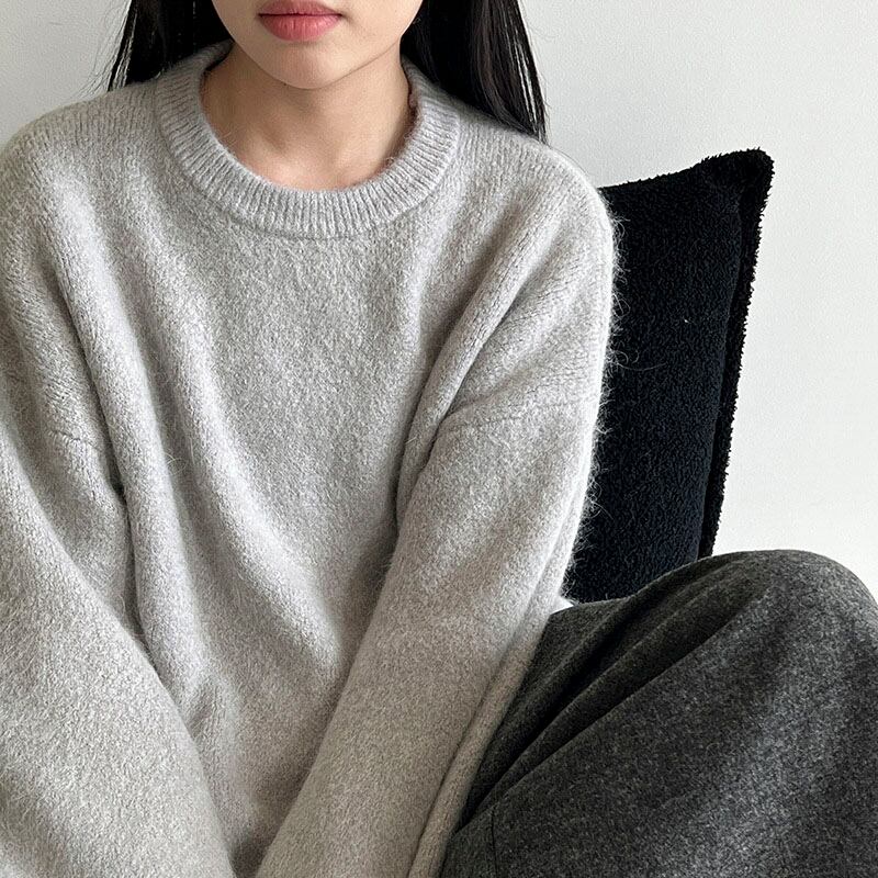 Fluffy rabbit fur mix knit pullover 2litr05880