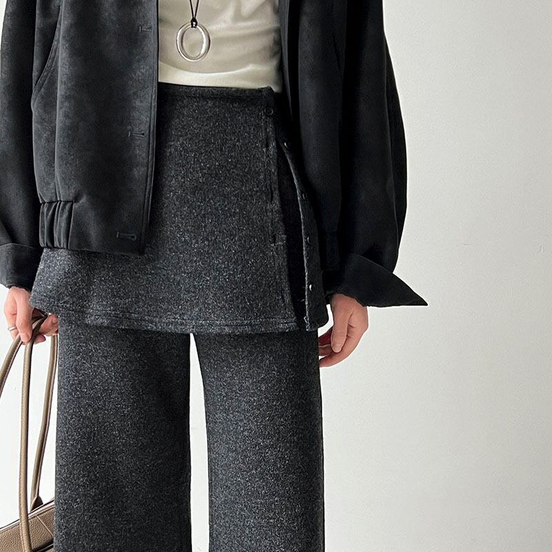 トレンド感のあるレイヤードデザインが魅力のワイドパンツ。