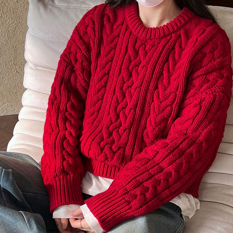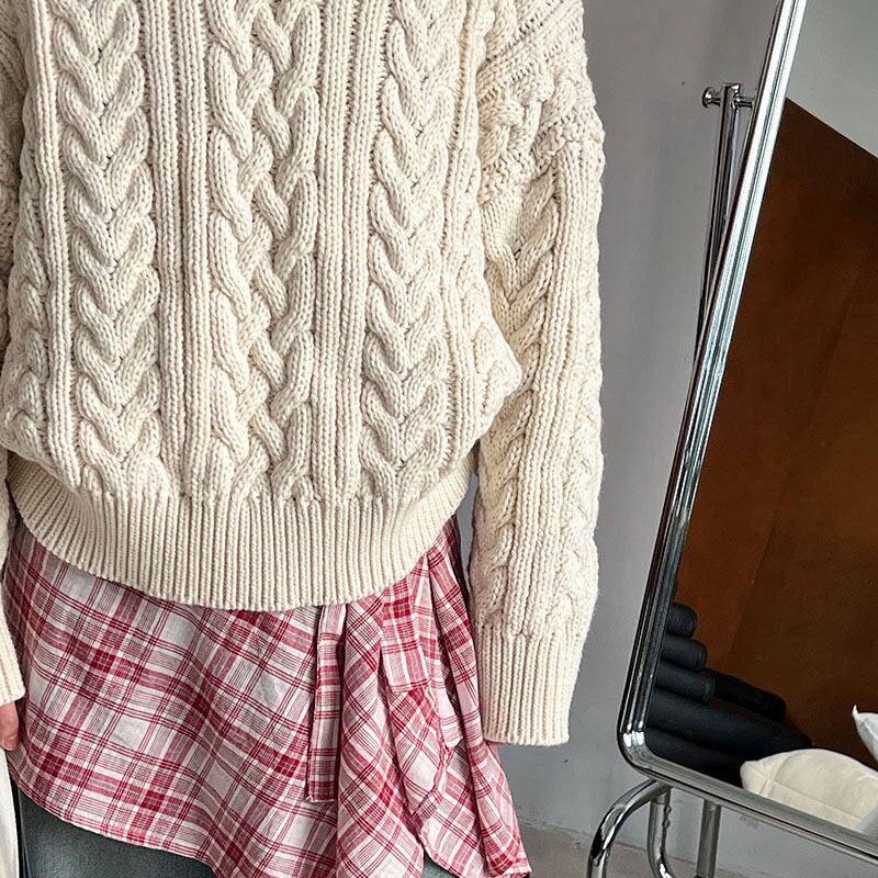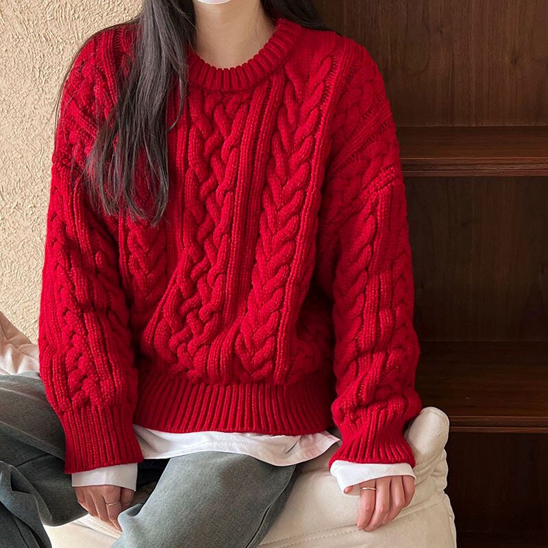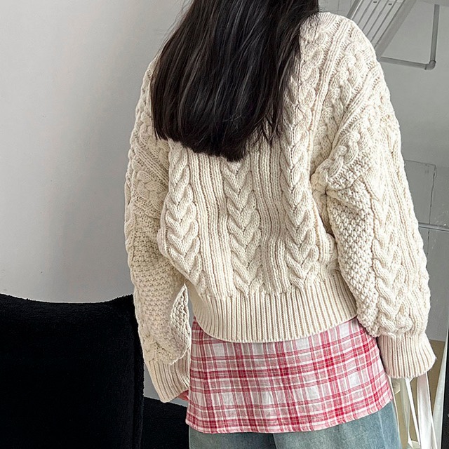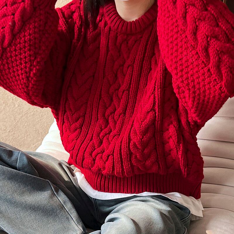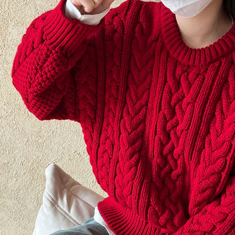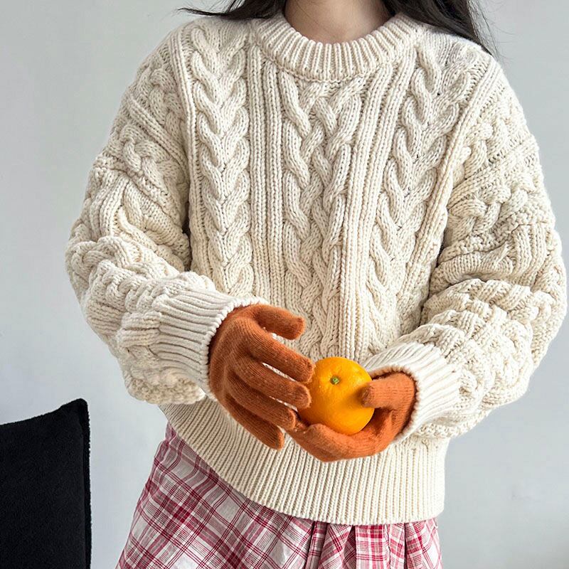 ざっくりとした編み模様が冬の装いに華やかさをプラス。