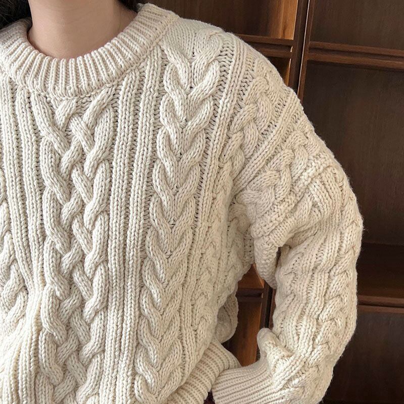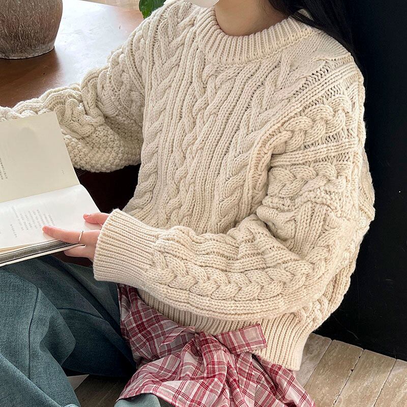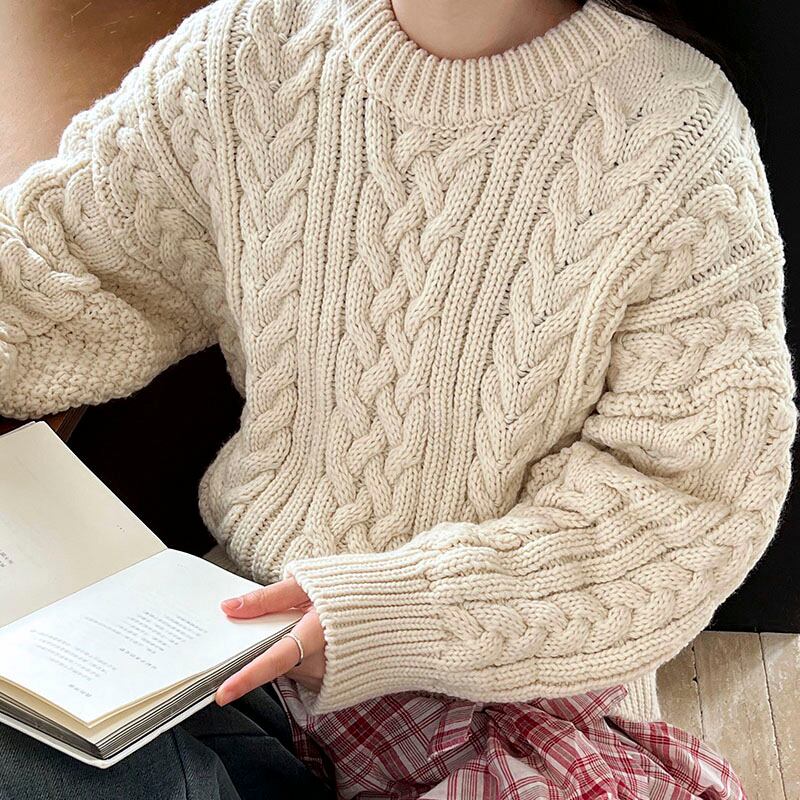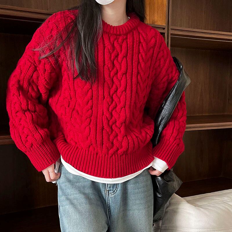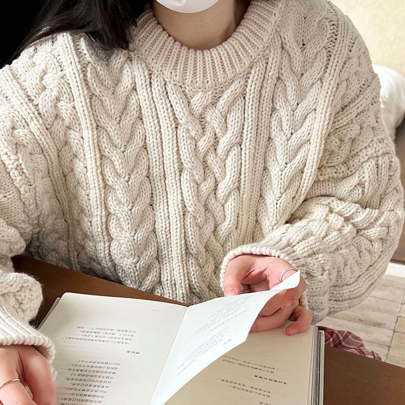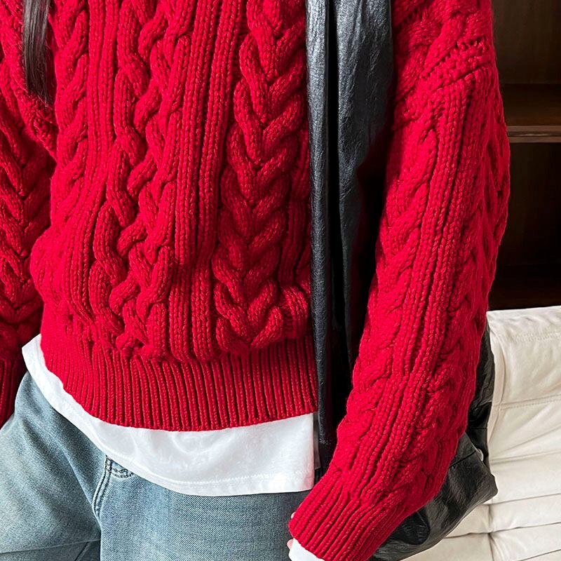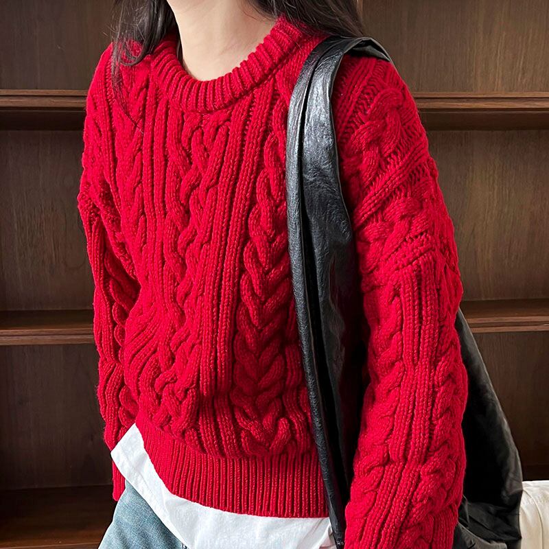 ざっくりとした編み模様が冬の装いに華やかさをプラス。