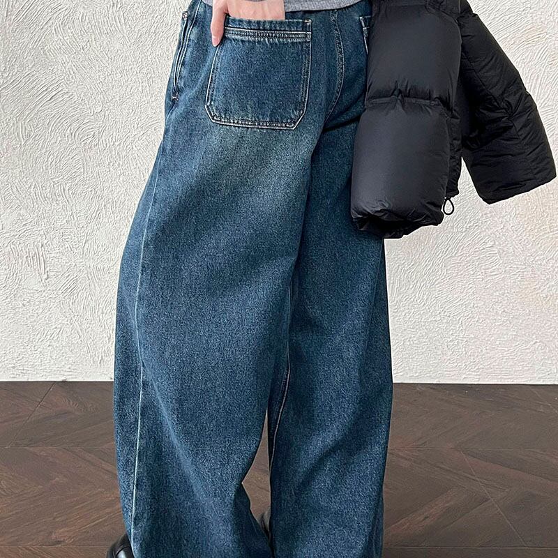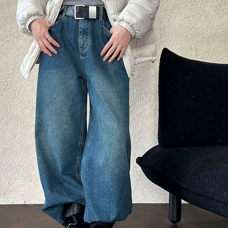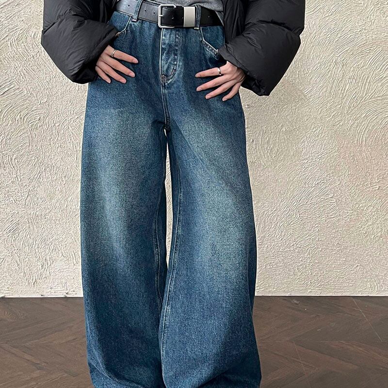 ゆったりとしたシルエットがこなれ感を演出するワイドデニムパンツ。