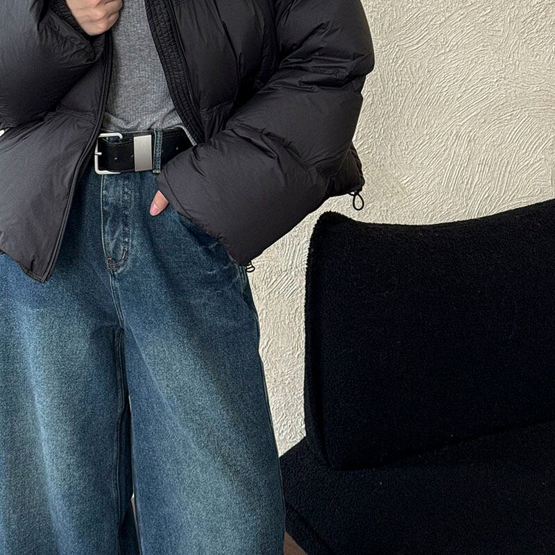 厚手のトップスやアウターともバランスよく合わせやすい一本です。