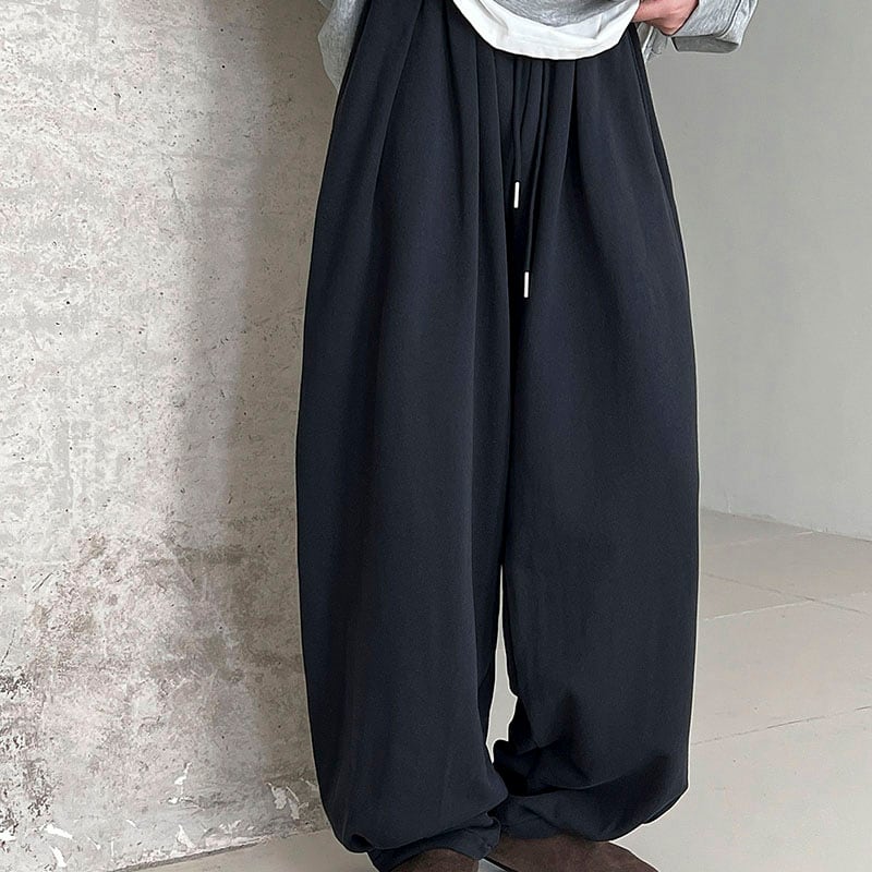 ゆったりとしたシルエットが魅力のワイドスウェットパンツ。