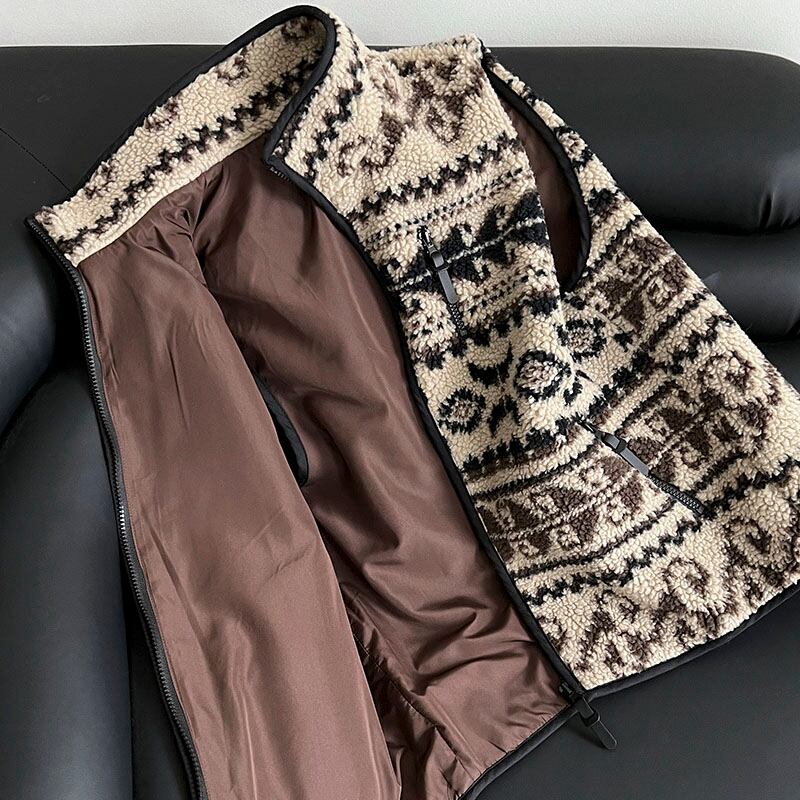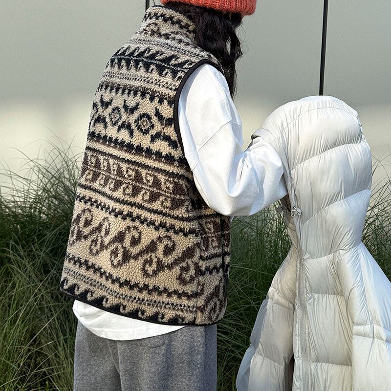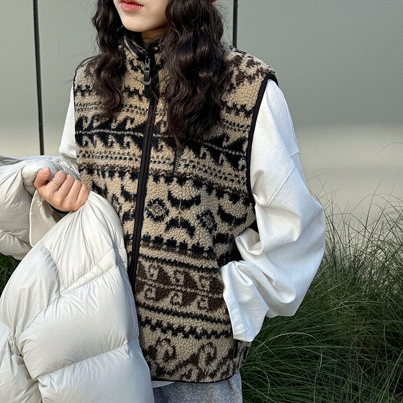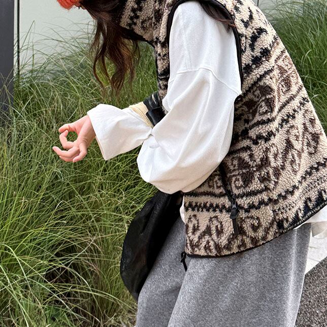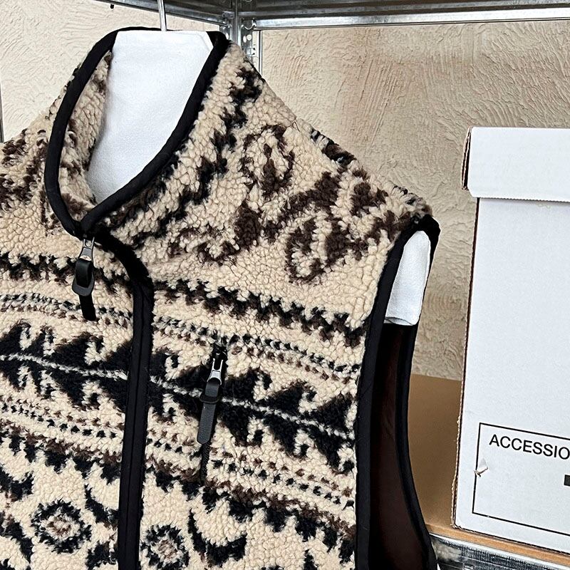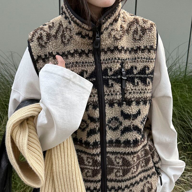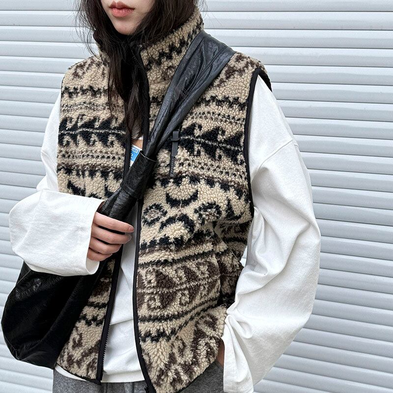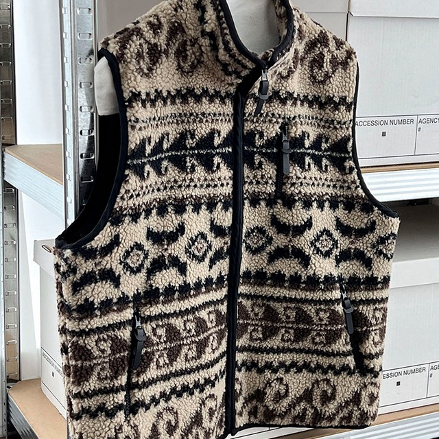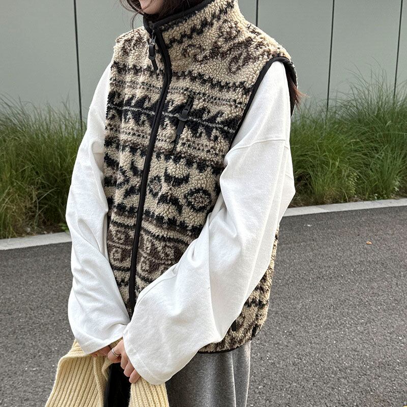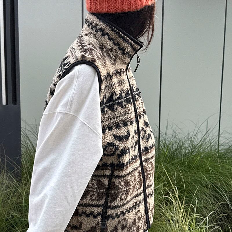 ふんわり柔らかなボア素材が心地よいフリースベスト。