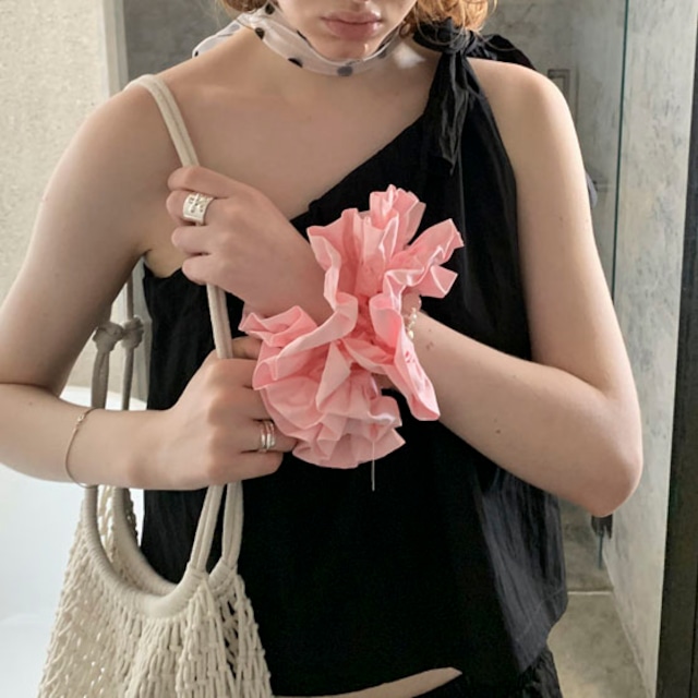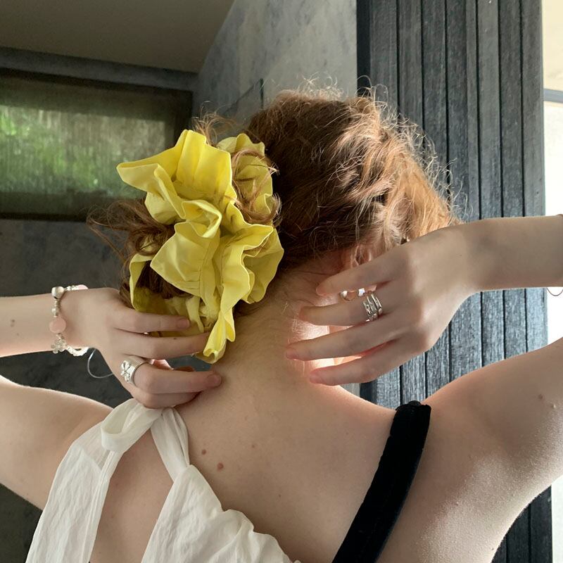 軽やかな素材でふんわりと仕上げた、ボリューム感たっぷりのシュシュです。