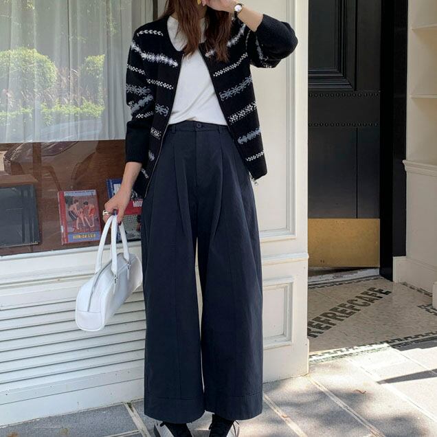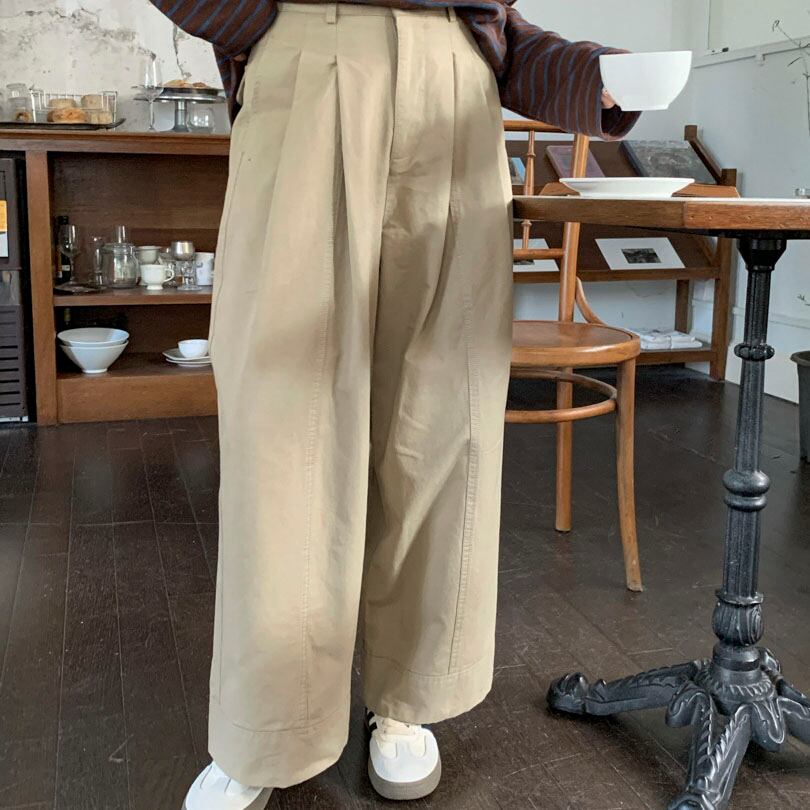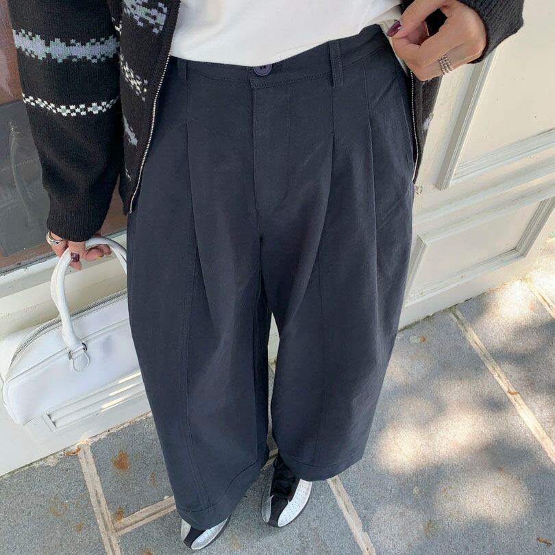 深めのタックが立体感を生み出し、シルエットを美しく見せるワイドパンツです。