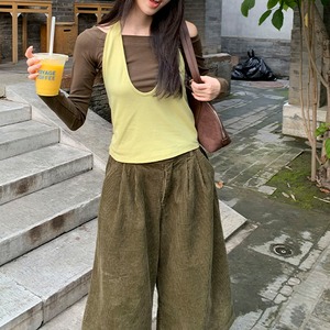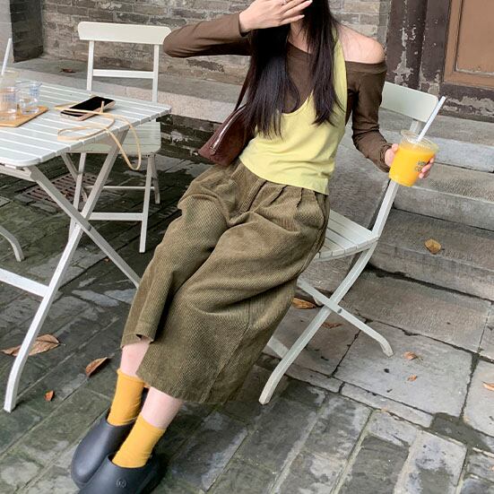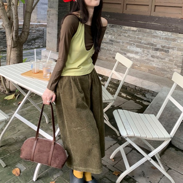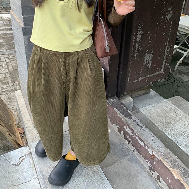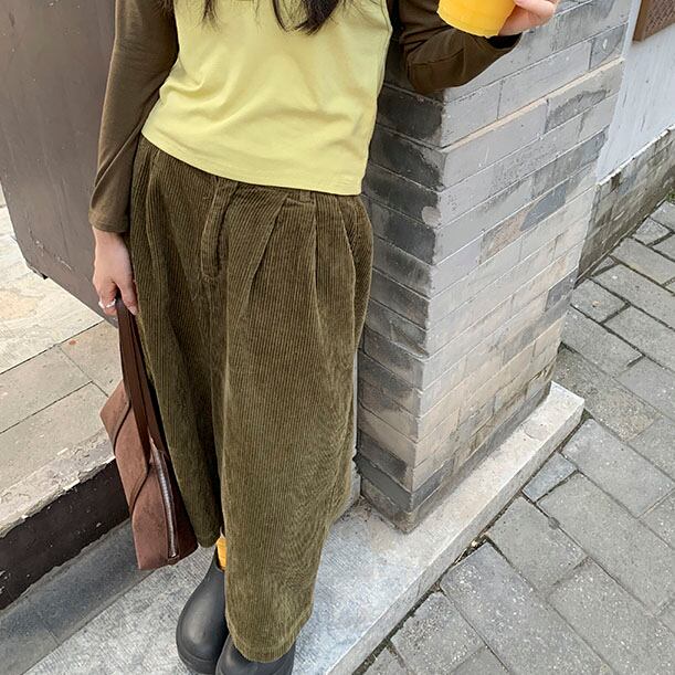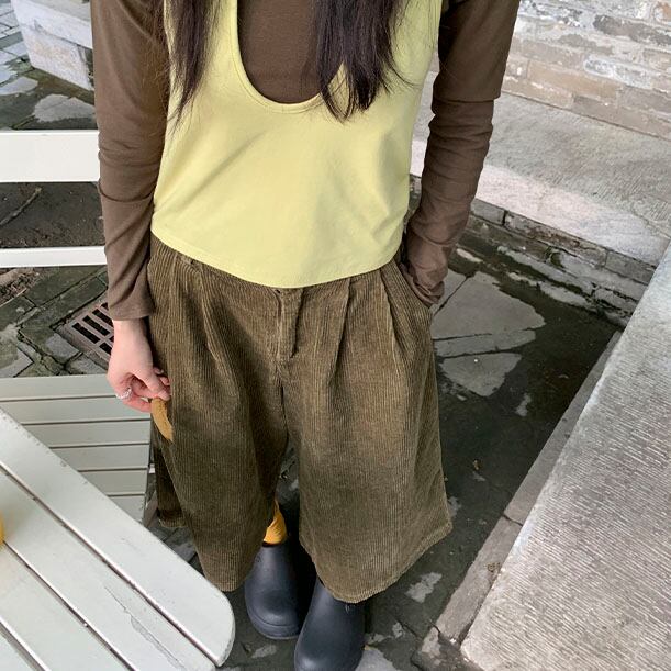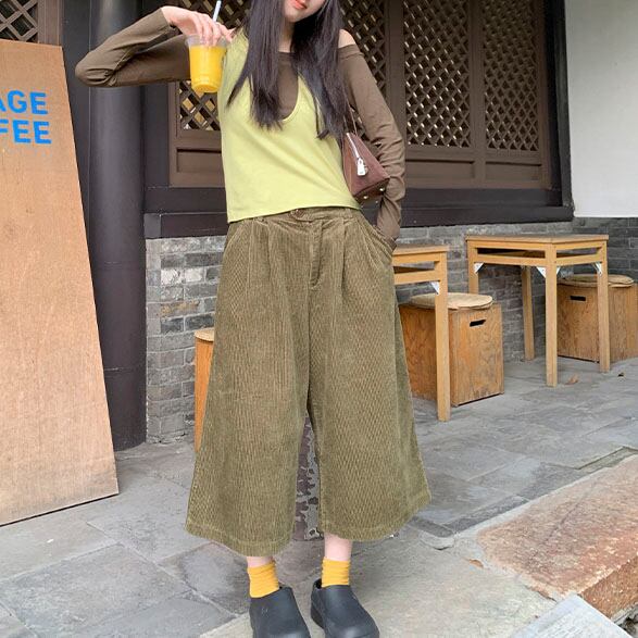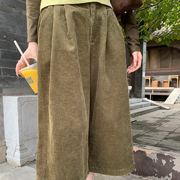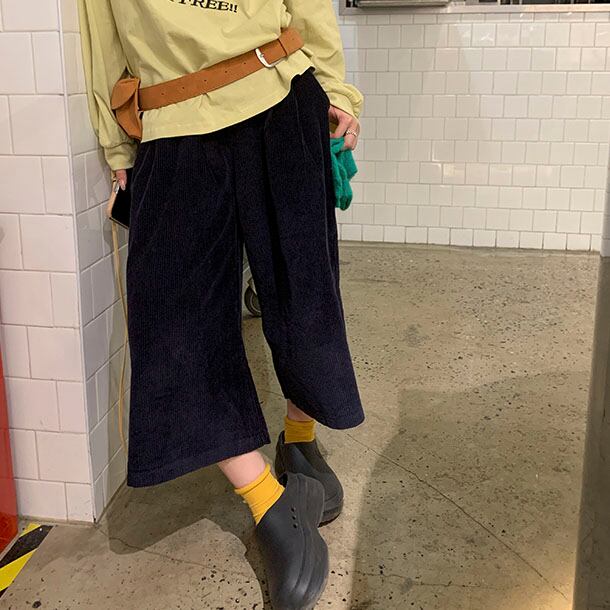 柔らかな風合いが心地よいコーデュロイ素材のワイドクロップドパンツです♡