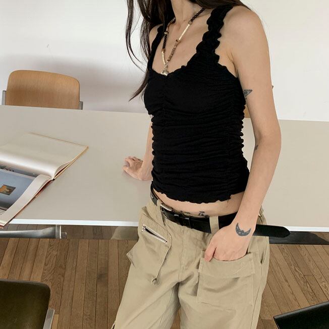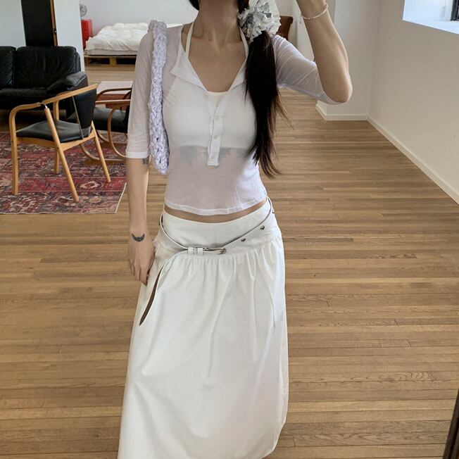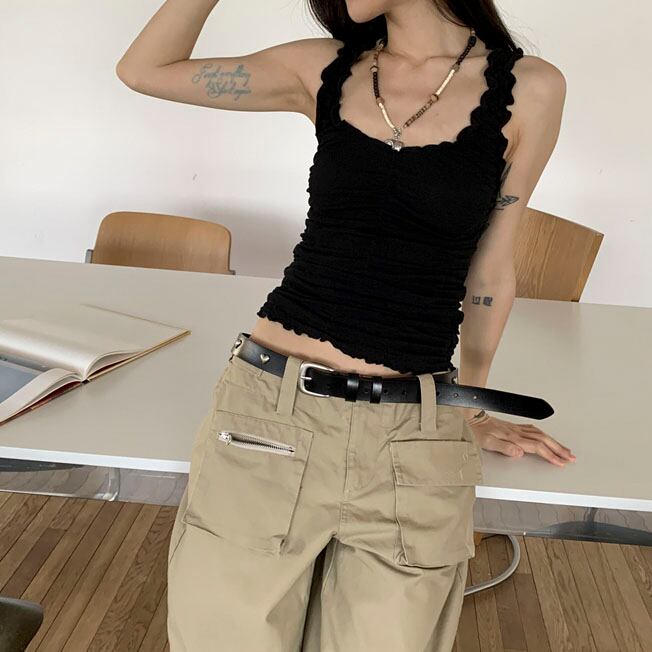 ウエスト位置にさっと巻くだけで、シンプルコーデに遊び心をプラス!
