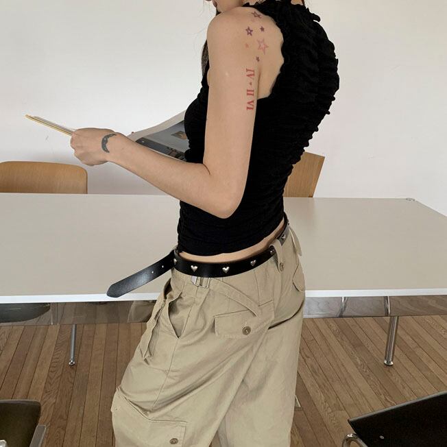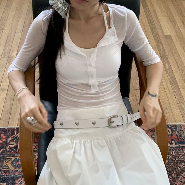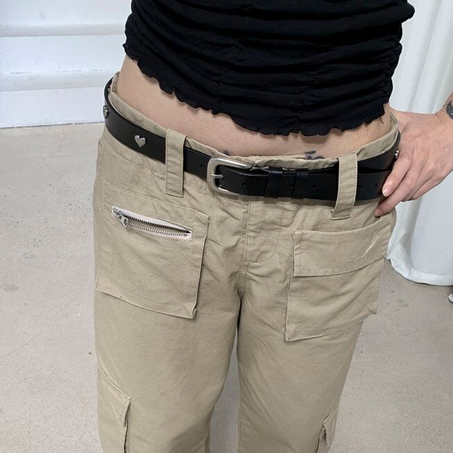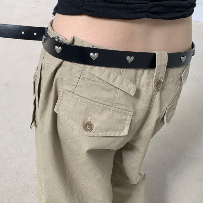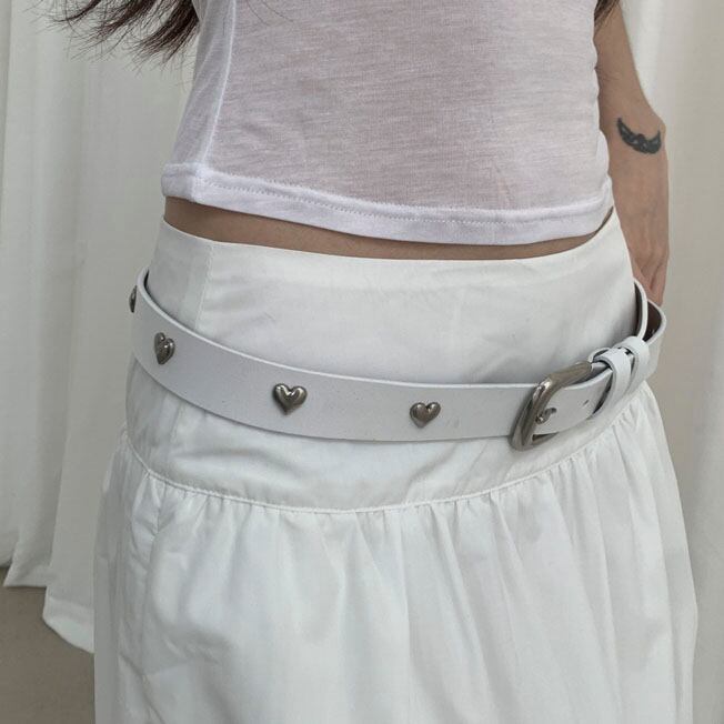 小さなハートスタッズがアクセントになる細身のデザインベルトです♡