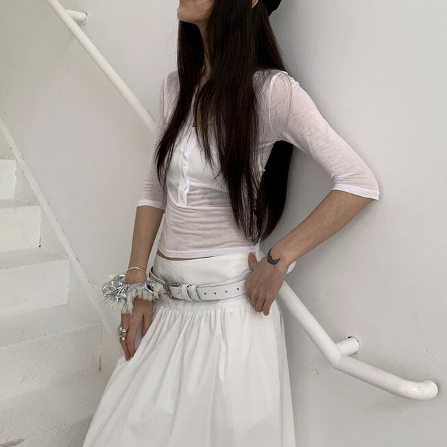 パンツにもスカートにも合わせやすく、さりげない存在感が魅力。