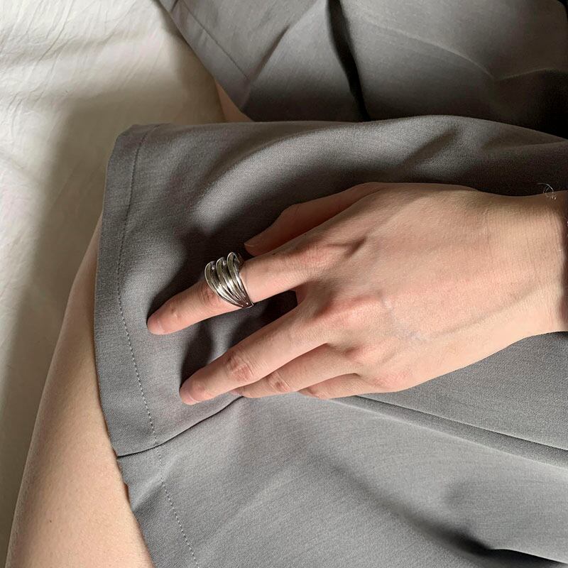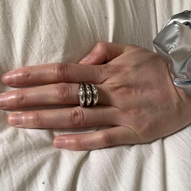 重なり合うメタルラインが立体感を生み出すデザインリングです♡