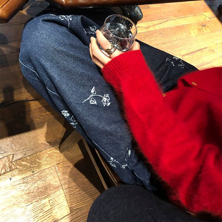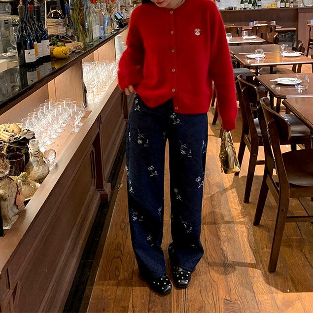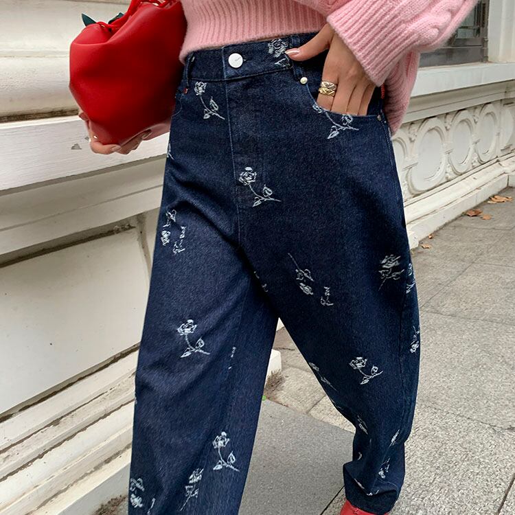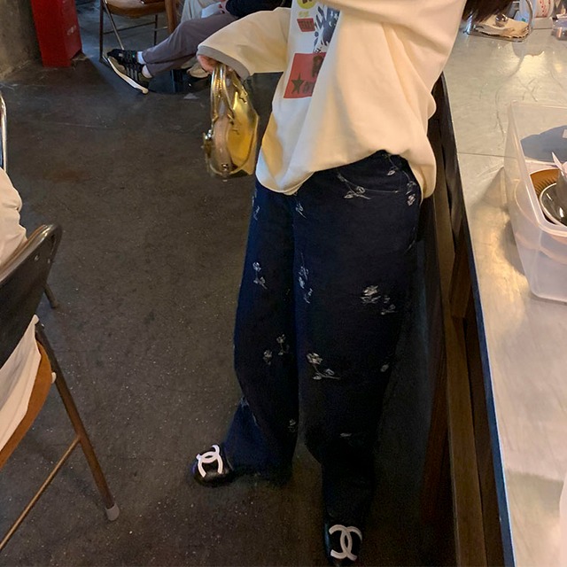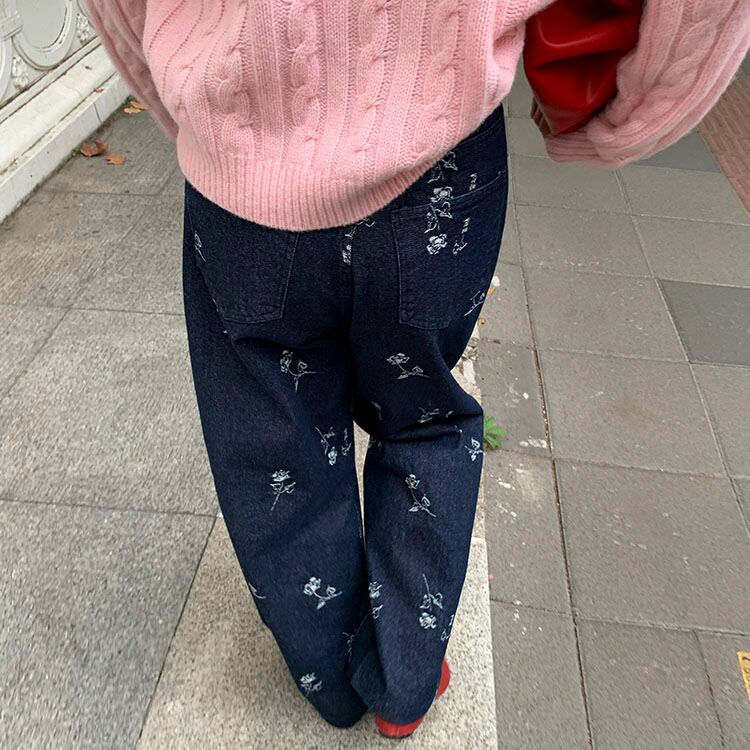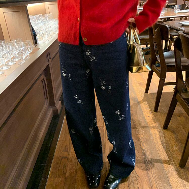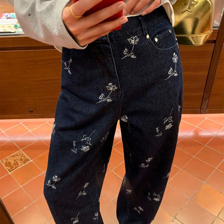 繊細なローズ刺繍をちりばめたルーズシルエットのデニムパンツです♡