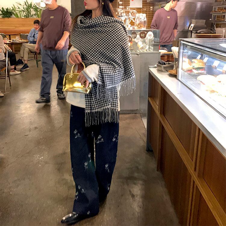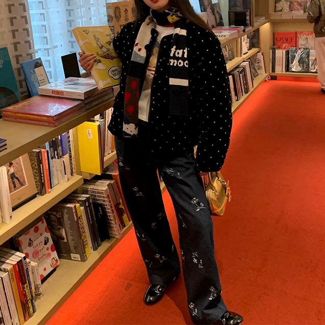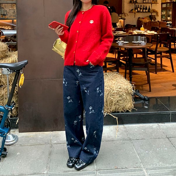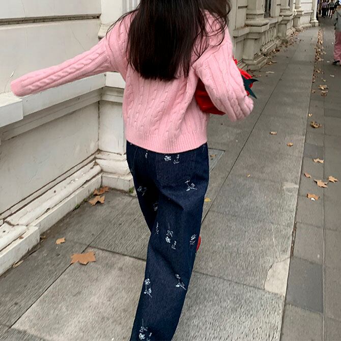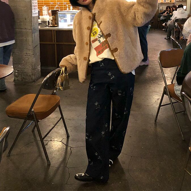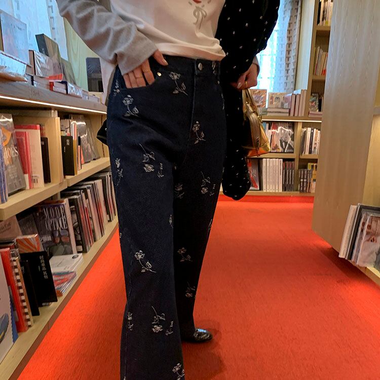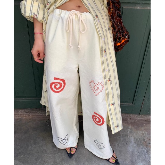 繊細なローズ刺繍をちりばめたルーズシルエットのデニムパンツです♡