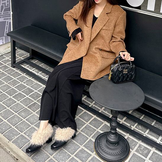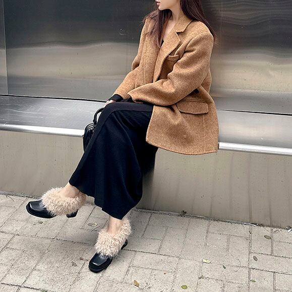 すっきりした甲のラインとふんわりファーのバランスで、冬コーデのアクセントに。