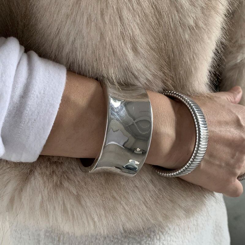 なめらかなカーブラインが手元を美しく見せるワイドカフブレスレットです♡