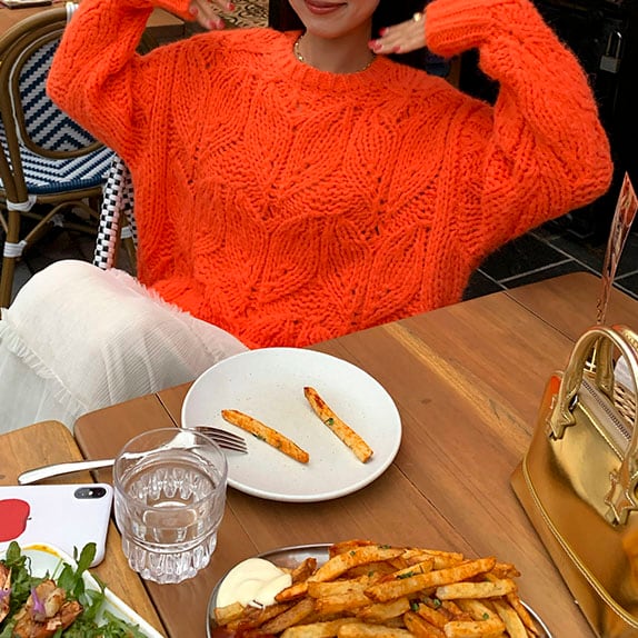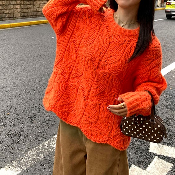 ふんわりモヘアタッチで、編み模様が立体的に浮かぶ存在感たっぷりのニットです♡