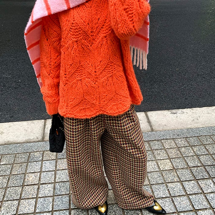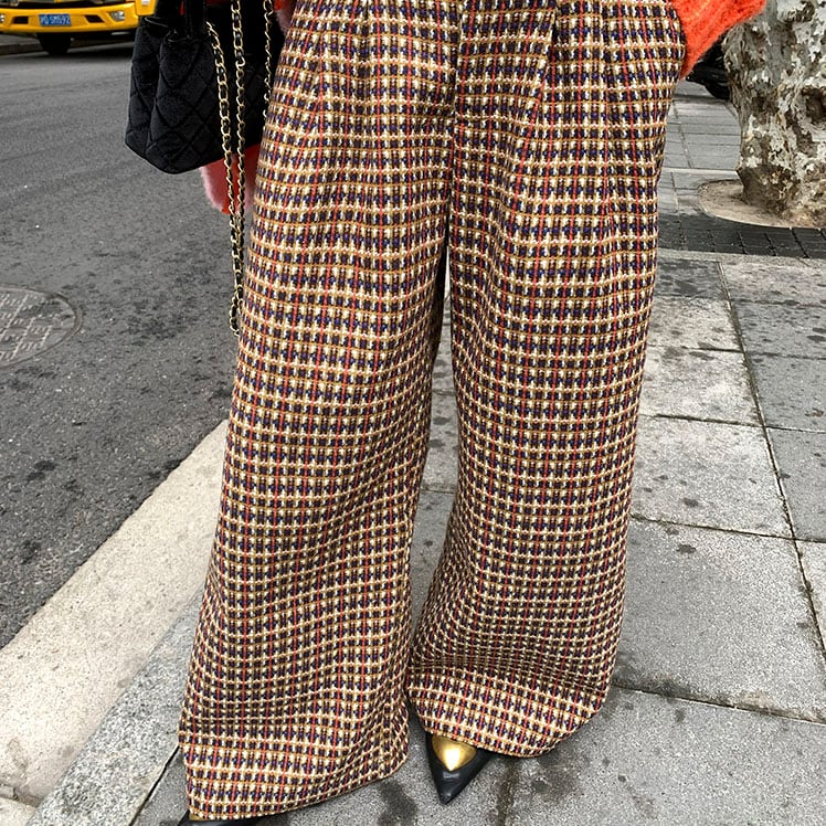 細かな色糸を織り交ぜたツイードチェックが、コーデに季節感とリッチなムードをプラスしてくれる一本です♡