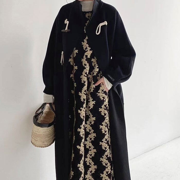 ほどよいIラインで体をすっきり見せ、ロング丈でも重くならないシルエットです。