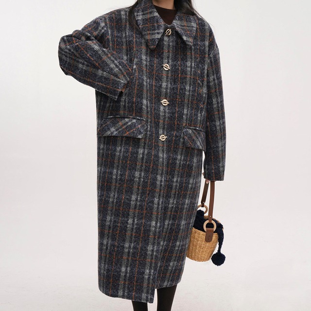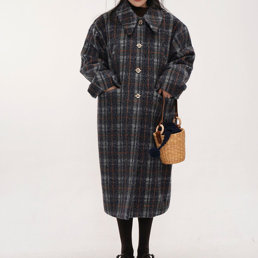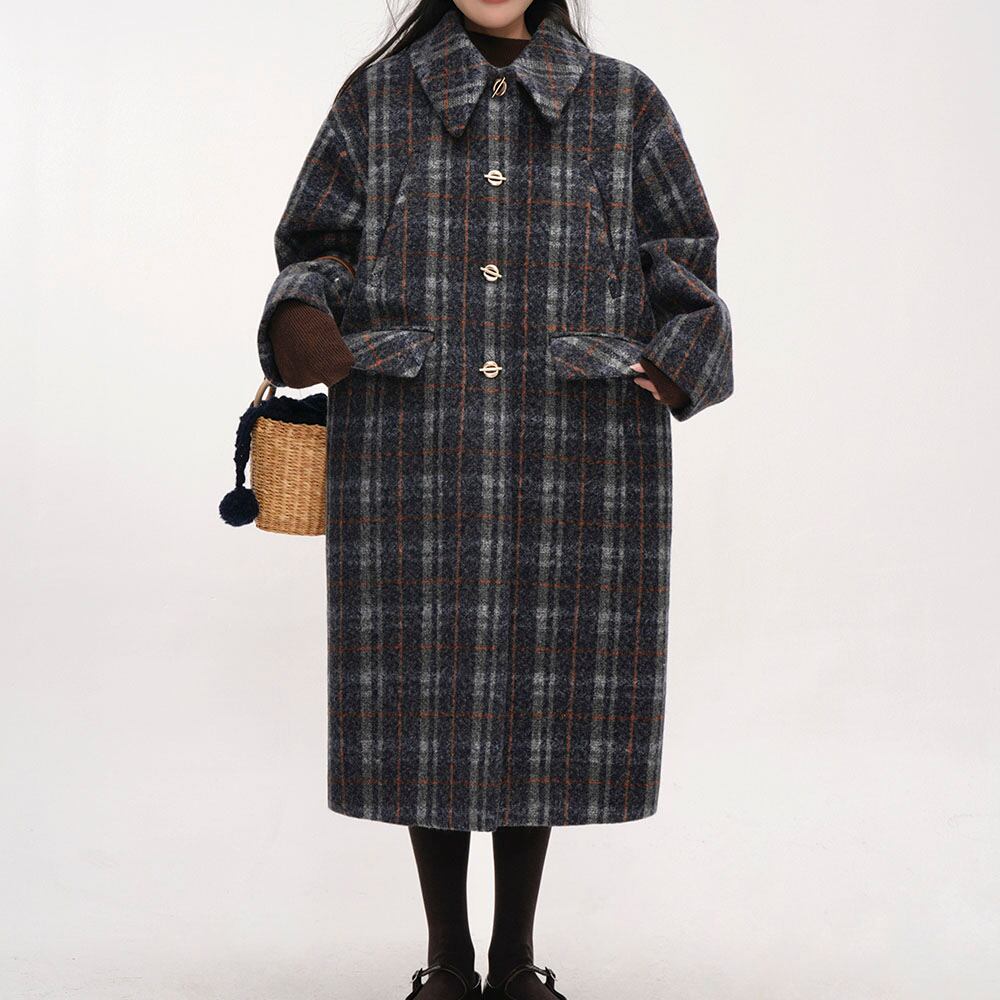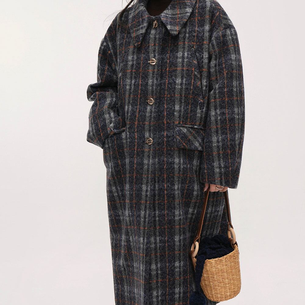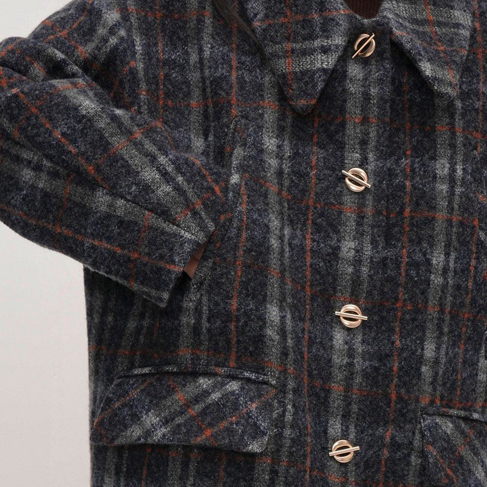 Wool-touch check long coat 2litr06030
