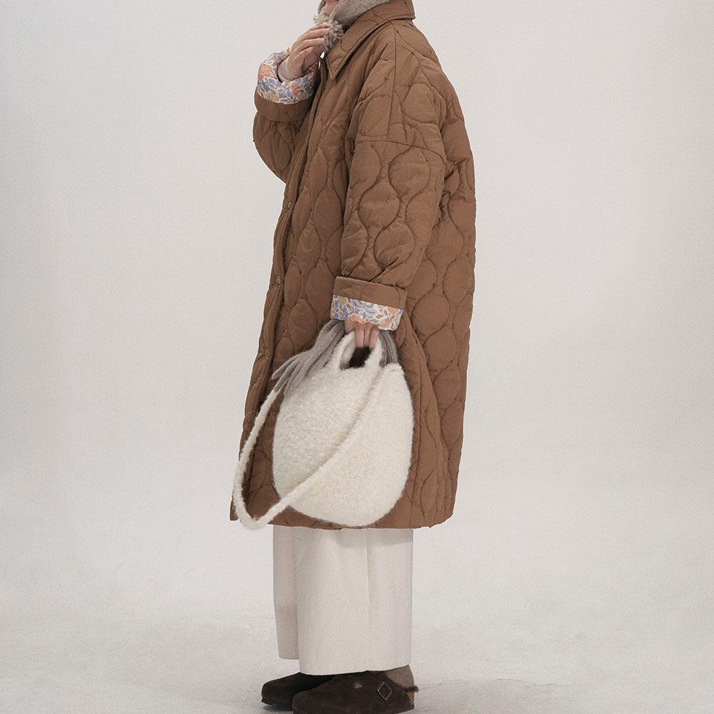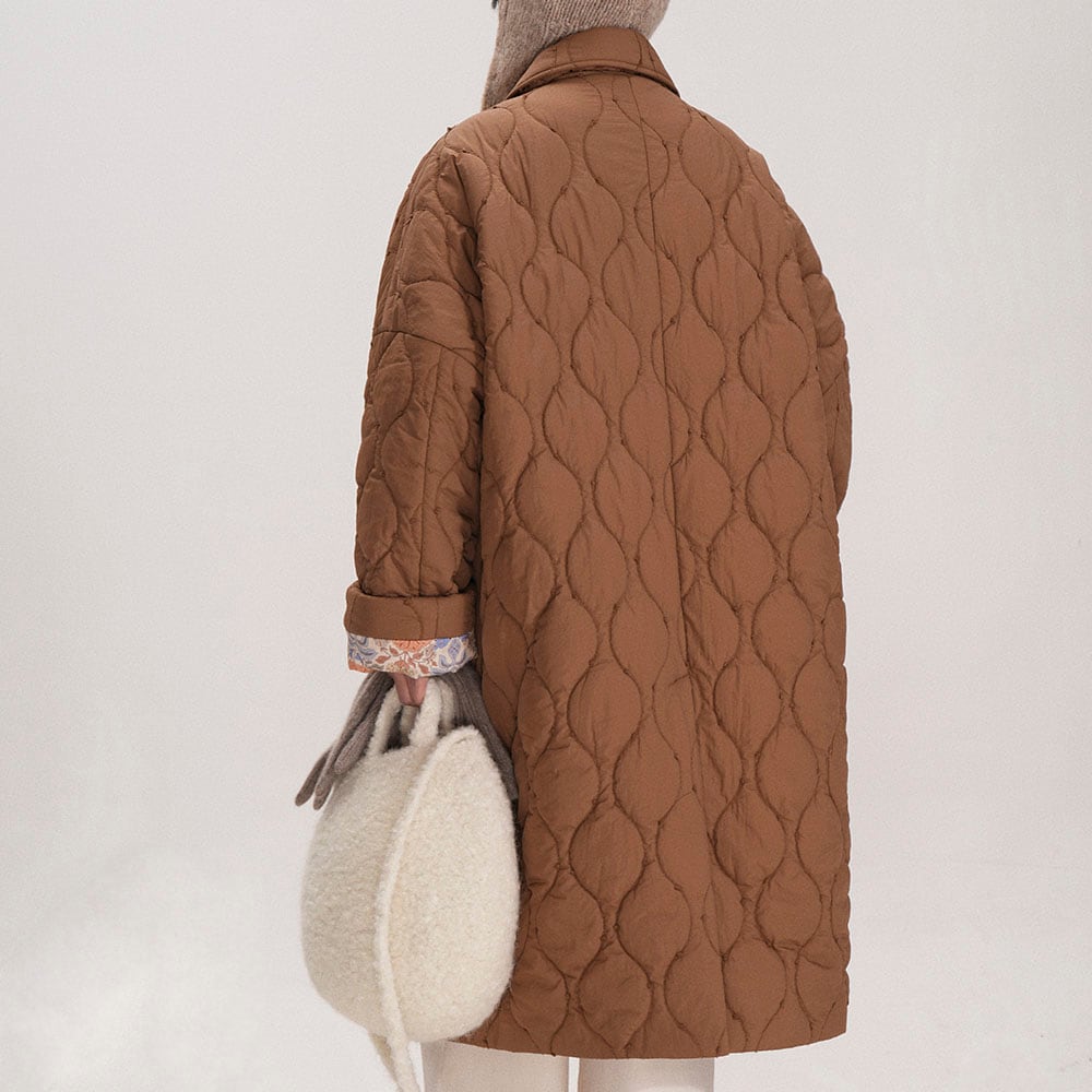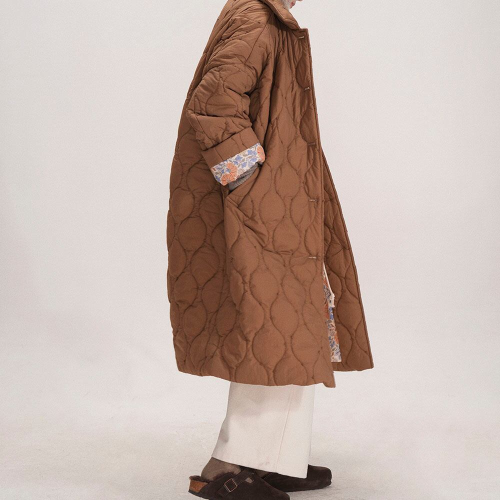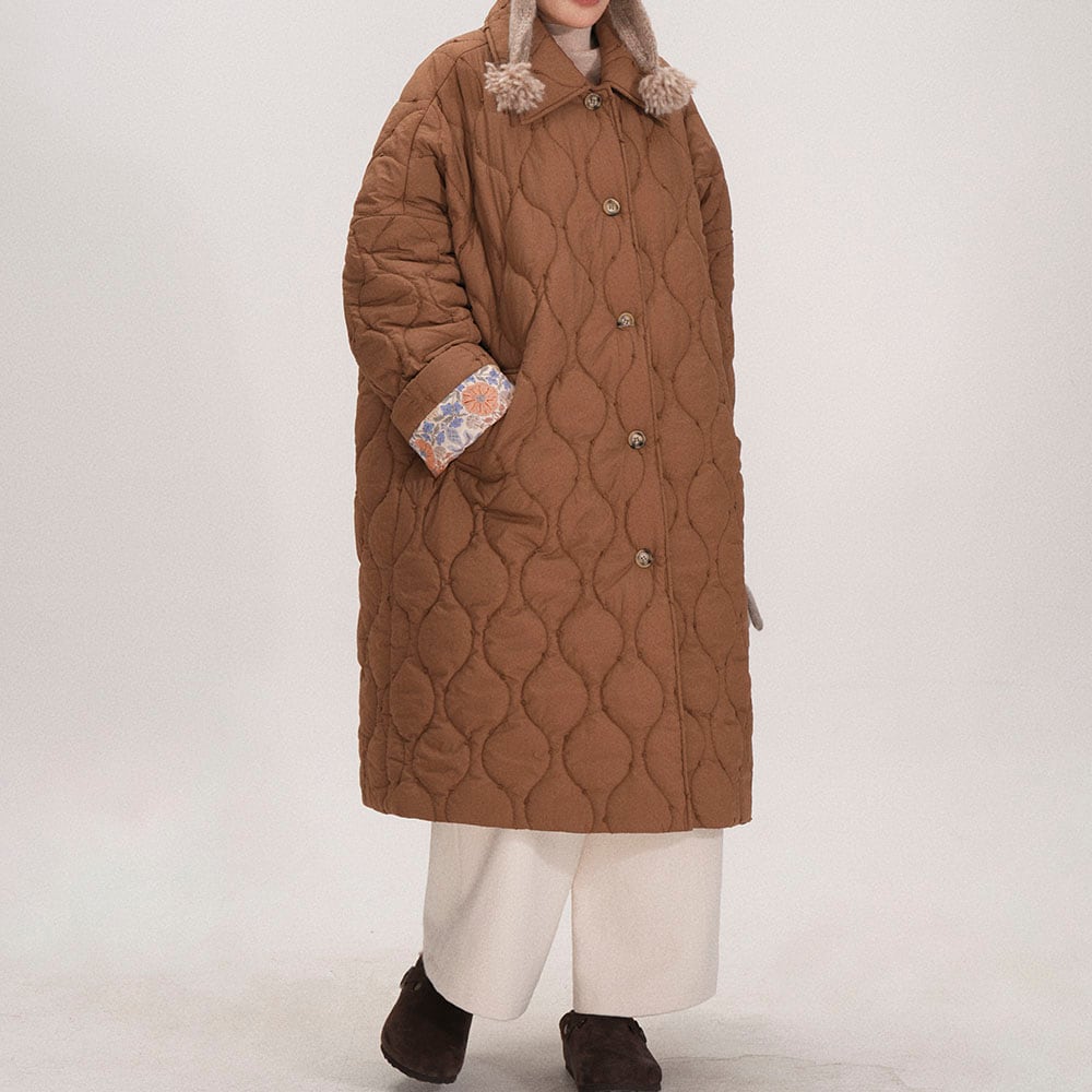 丸みのあるキルト模様がやさしい雰囲気を添え、裏地の花柄がチラッと覗いて冬の装いを華やかにします♡