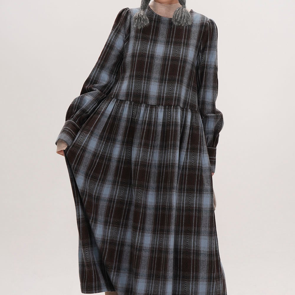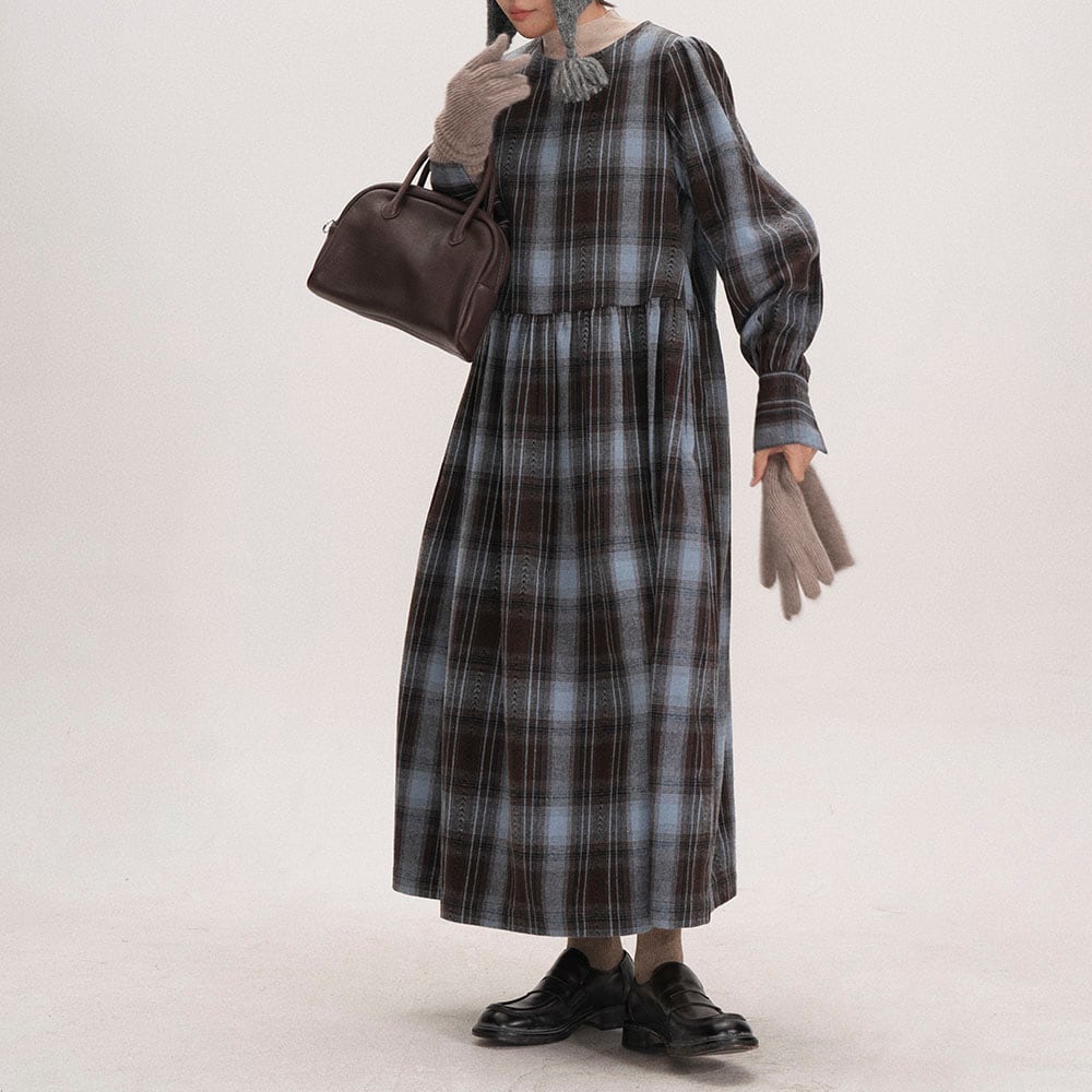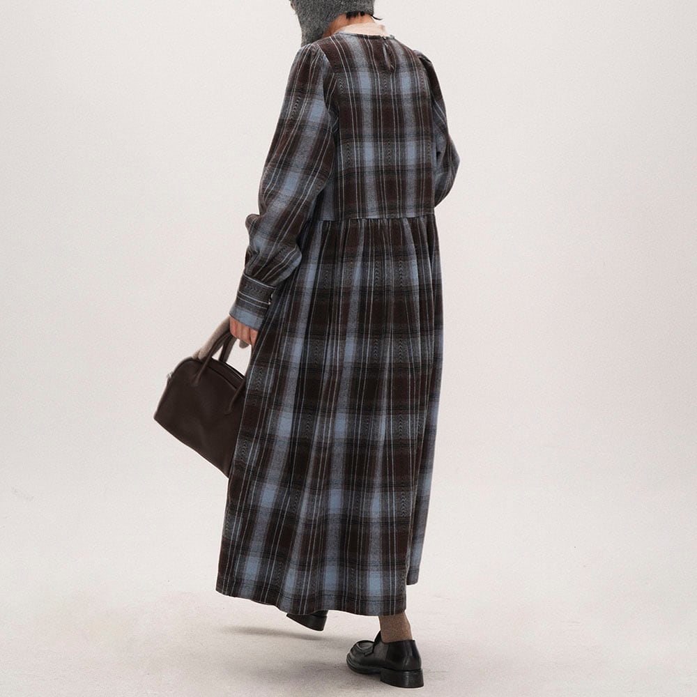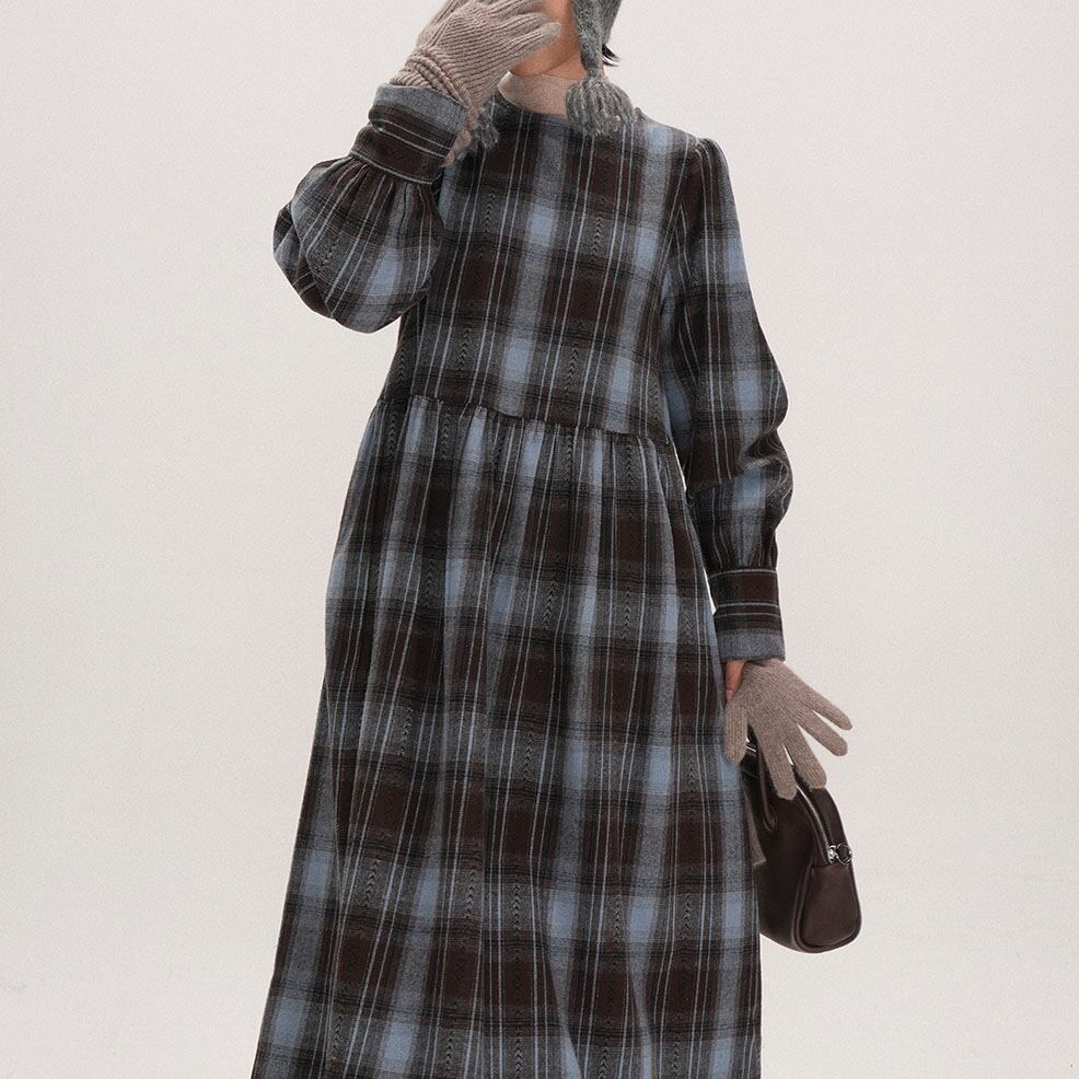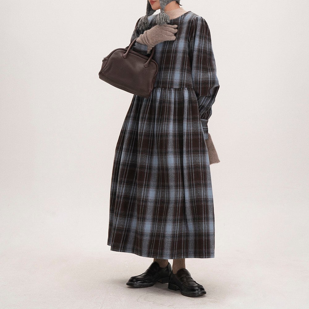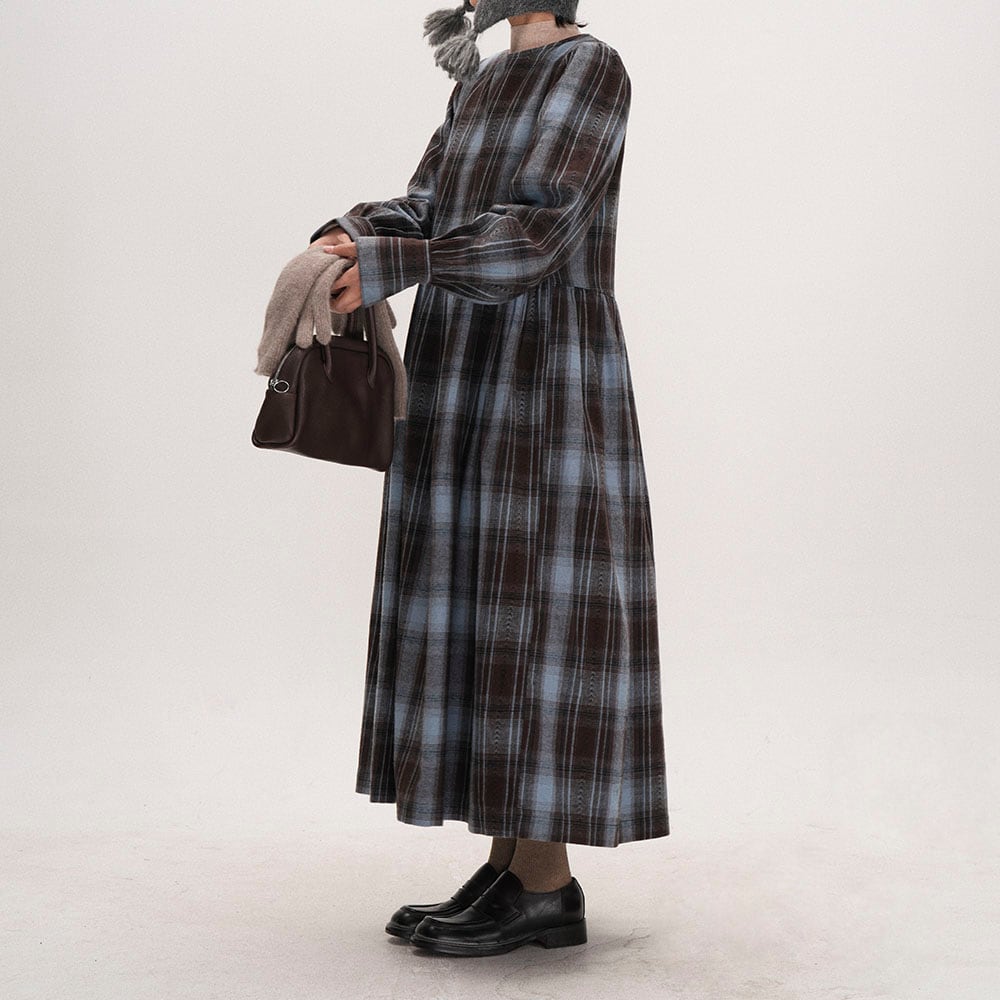柔らかなチェック柄が優しい雰囲気をつくるロングワンピースです♡